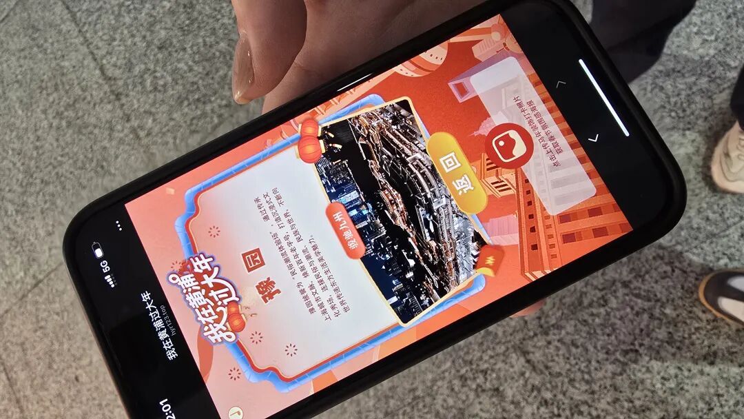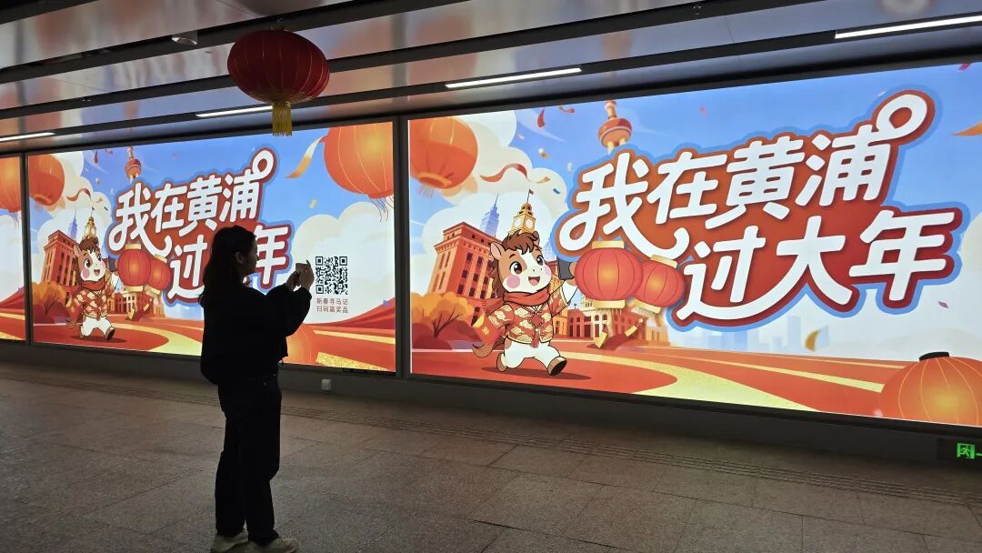 值得一提的是,这些广告不仅具有观赏性,还具备很强的互动性。海报上特别设置了二维码,乘客只需用手机扫码,就能看到豫园站附近的19个景点信息,为游客提供了详细的出行指南。更有趣的是,乘客还可以上传自己的马年装饰打卡照片,系统会自动生成具有春节氛围感的海报,让每一位参与者都能留下独特的新春记忆。