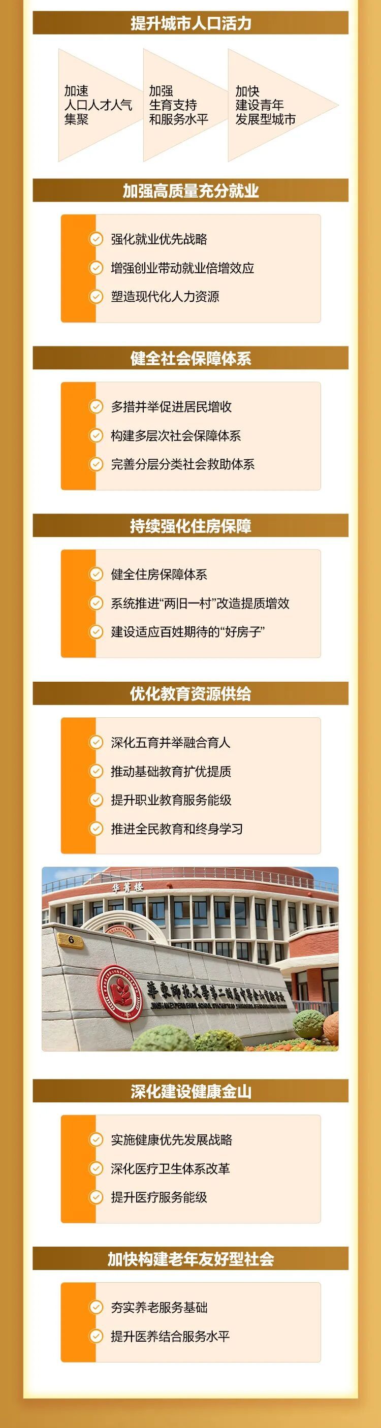 “十五五”时期是上海乘势而上的全面发力期,也是转型升级的攻坚决胜期。站在新的历史起点,谋划好未来五年发展蓝图,既是践行国家战略的使命担当,也是回应市民对美好生活向往的必然之举。 当前,上海各区陆续发布了“十五五”规划纲要,为让大家更好地读懂各区“十五五”发展部署,我们推出系列推文。 本期介绍的是金山区。“十五五”时期,对金山而言,是发展动能提质、城市功能提档的全面发力期,更是转型升级、重塑蝶变的攻坚跃升期。《金山区国民经济和社会发展第十五个五年规划纲要》提出了哪些重点任务?一起来了解→
