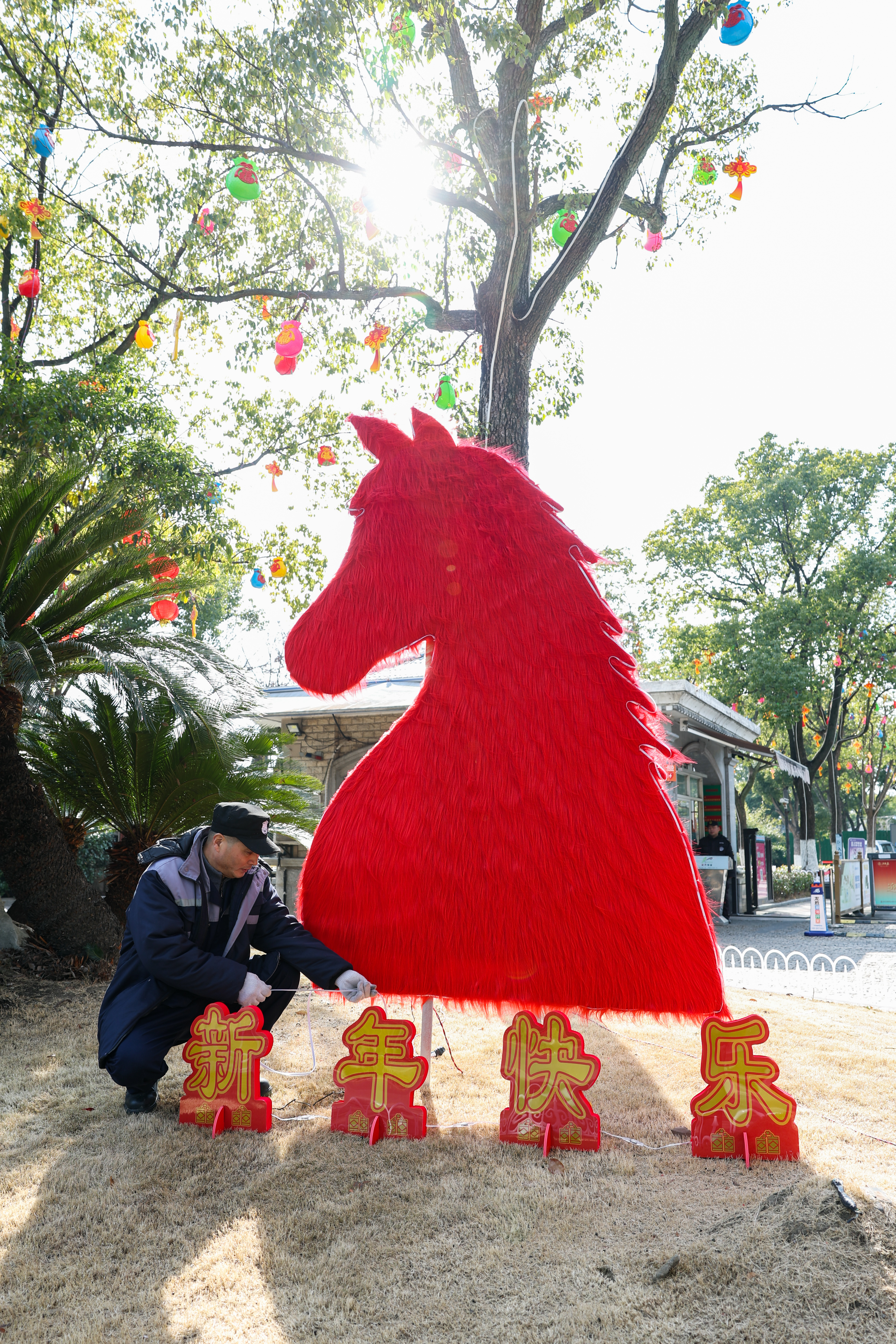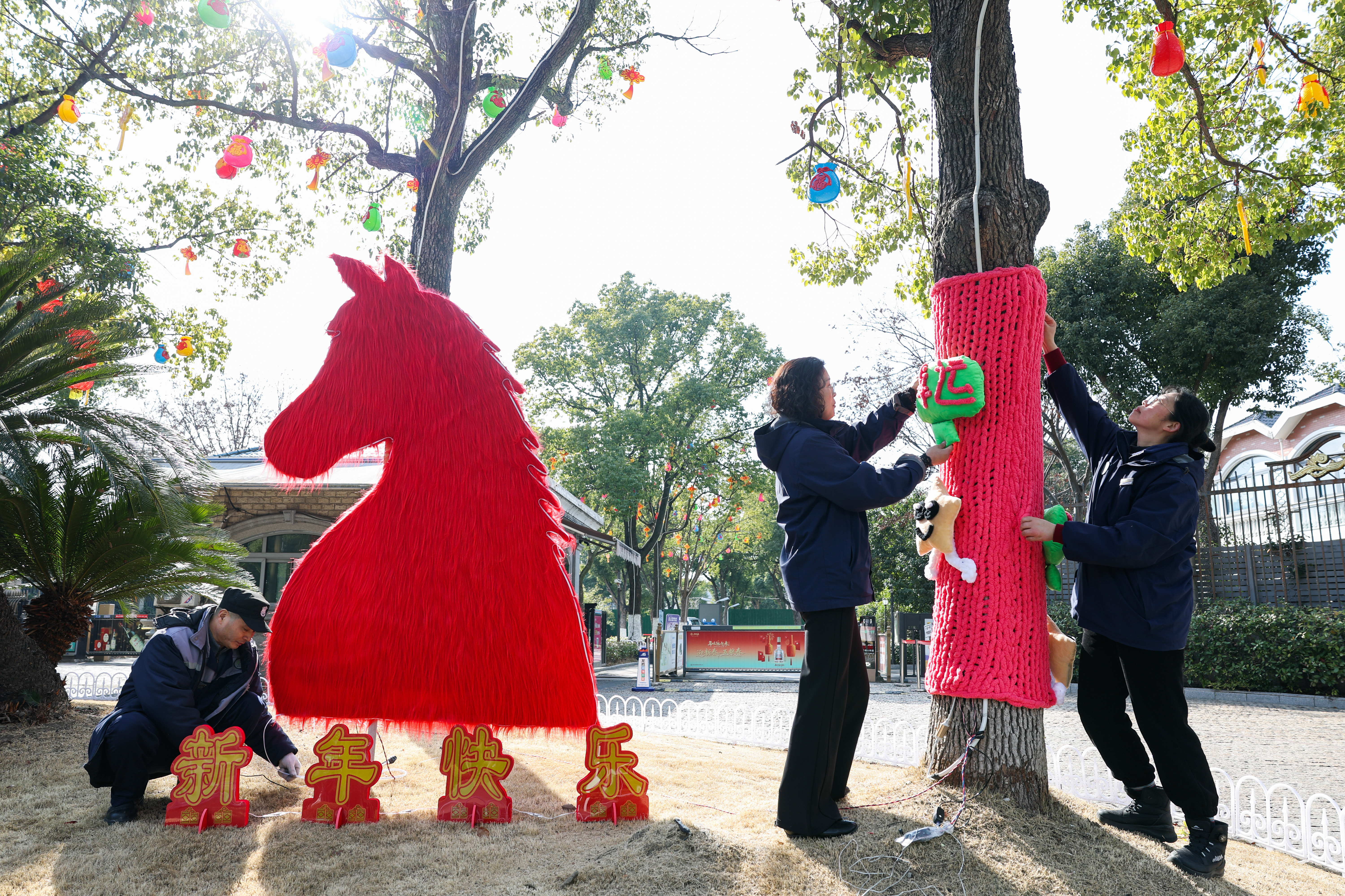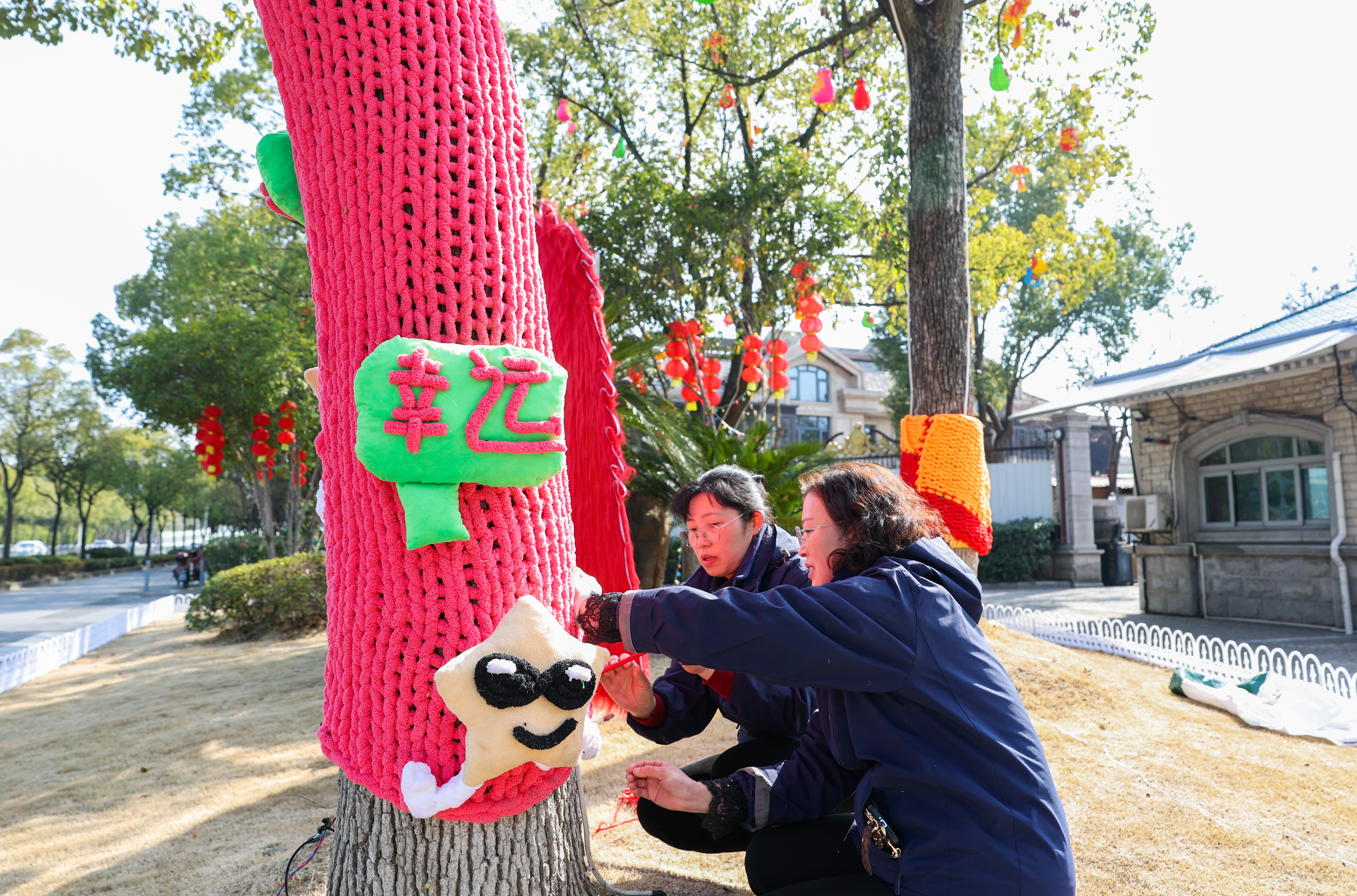 迎新春、焕新颜!2月11日,在昌鑫花园小区,松开物业公司正开展春节前的环境布置工作。现场以团圆、吉祥、欢乐为主题,巧妙融入国风元素,通过挂灯笼、给树木“穿”上手工编织的“彩衣”等形式,为居民营造出喜庆、祥和、温馨的节日氛围,让浓浓年味飘满社区家园。 记者 姜辉辉 摄