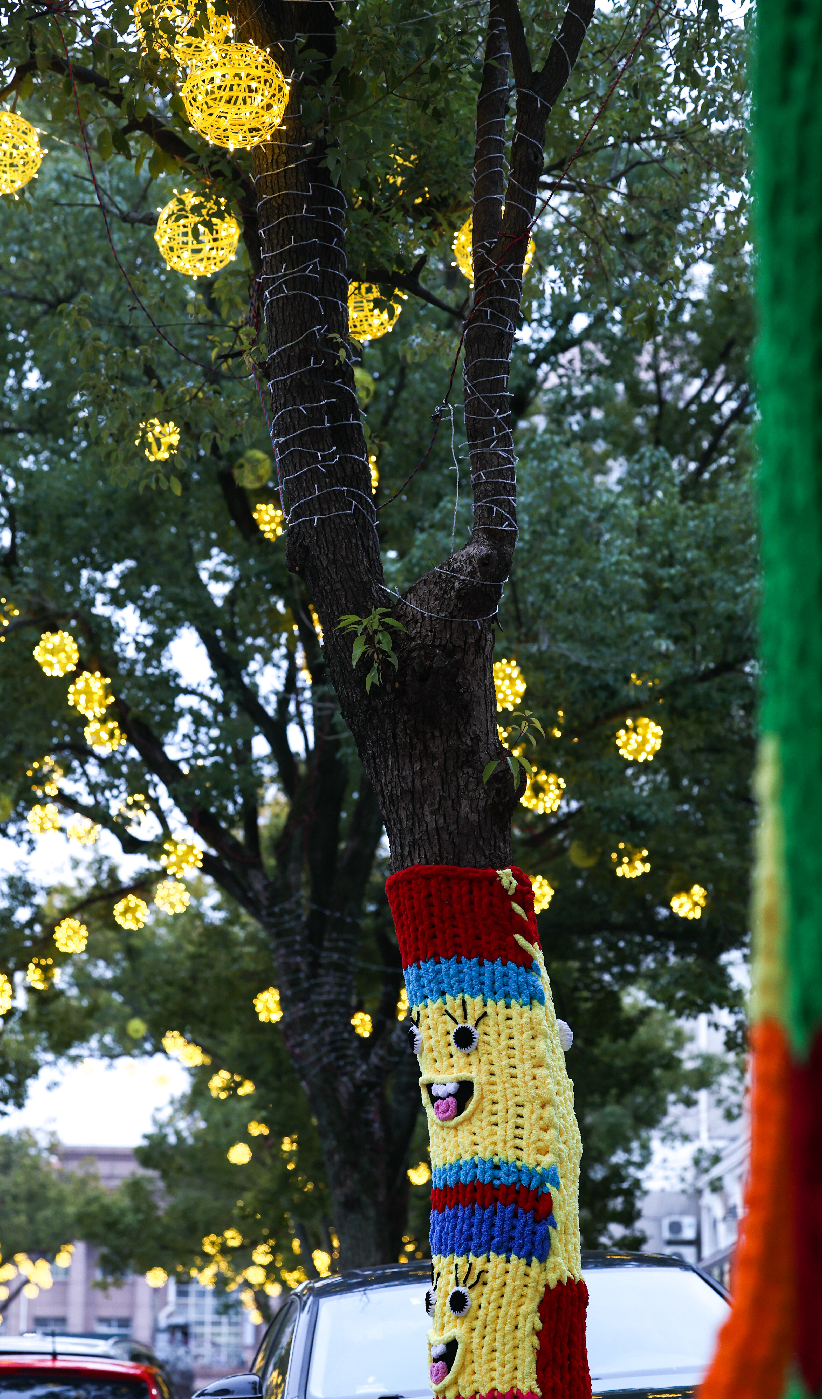 为树木“穿”上手工编制的“彩衣”