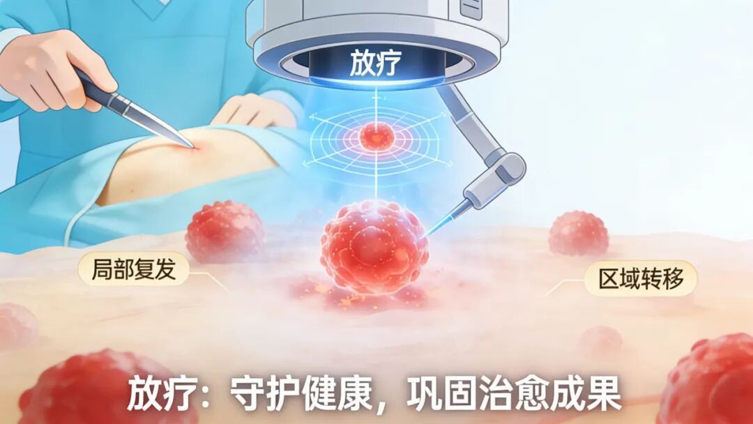 术后对肿瘤原来的生长区域以及周边的淋巴通道进行放疗。这就像在一次成功的歼灭战后,对战场进行彻底的“清扫”和“消毒”,清除可能躲藏的“散兵游勇”。