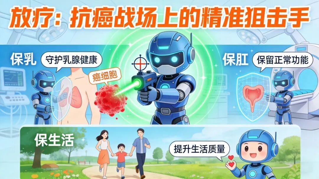 提到肿瘤治疗,大家脑海里首先跳出来的往往是“手术”和“化疗”。 其实,在与各种强大的抗癌手段中,还有一位强大的“控场大师”——放射治疗(放疗)。放疗,不靠手术刀,却能以无形的“射线”精准打击肿瘤;它不总是站在聚光灯下,却联合手术、化疗常常成为帮助许多患者提高生活质量,甚至决定治疗胜败的关键担当。