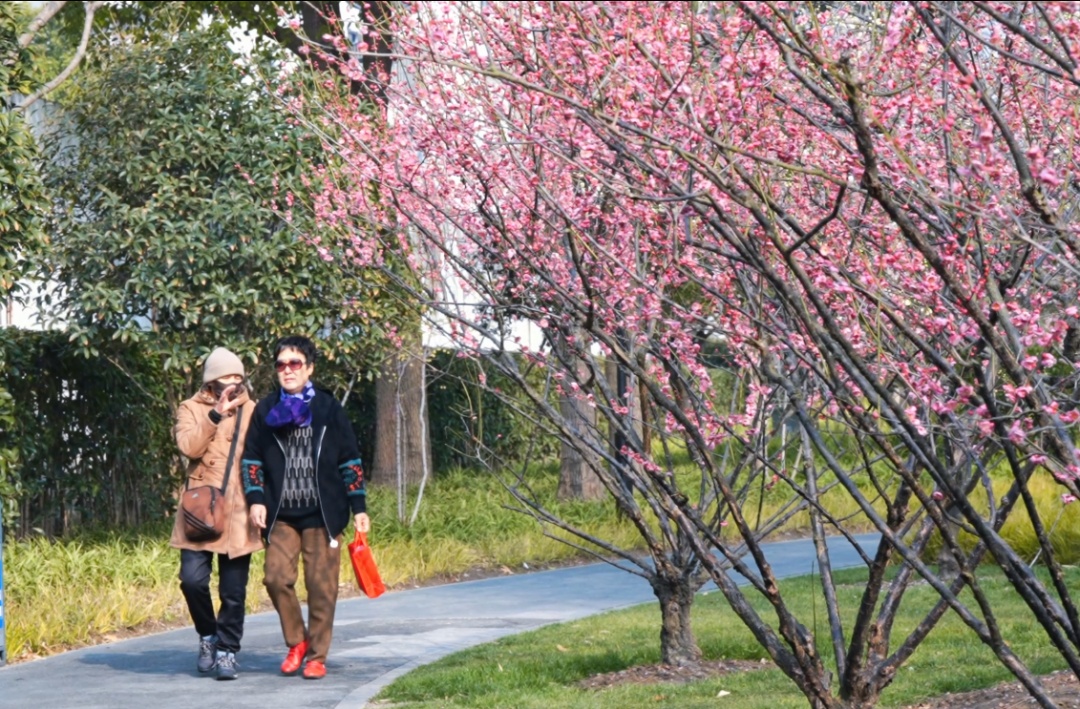 “每个季节来,都有美景。”常来散步的居民李阿姨笑着说,“现在是梅花,春节后再过一个月樱花就要接上了。”