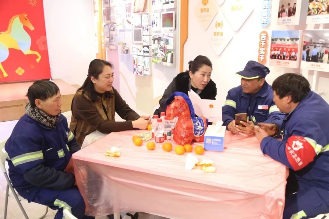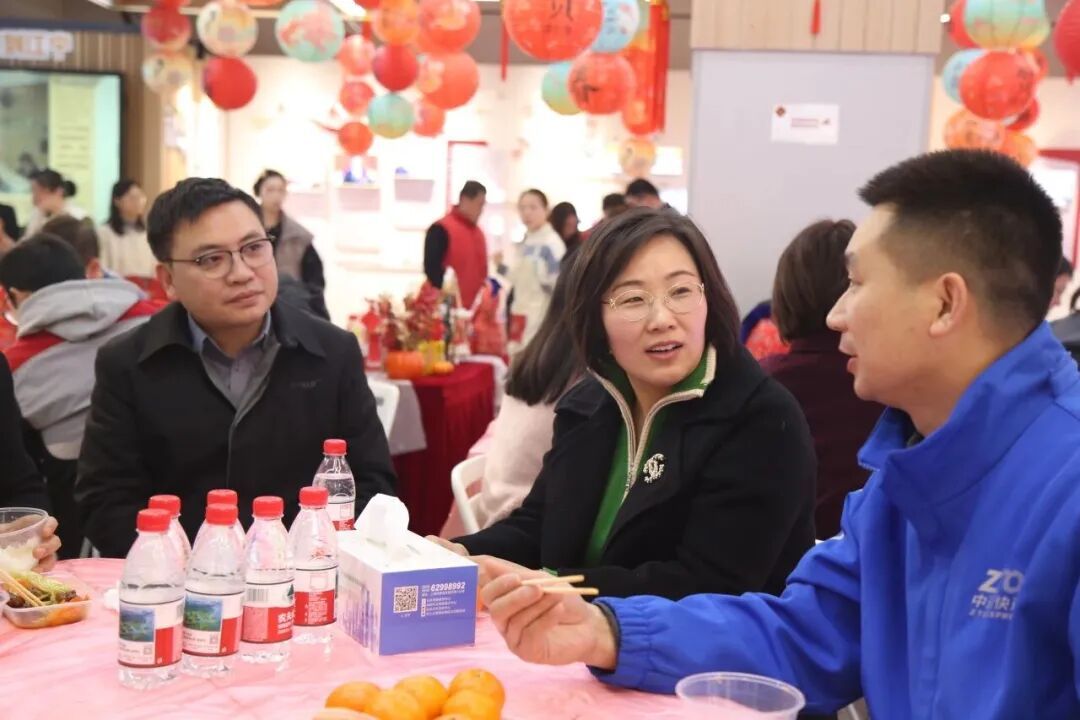 党群服务中心内,一顿热闹的“团圆饭”为新就业群体送上了关怀,大家围坐桌旁品尝着热气腾腾的饭菜,闲聊家常、观看文艺演出,温馨的氛围弥漫整个空间。