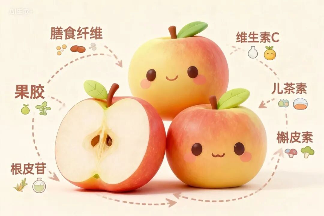✔富含膳食纤维,其核心成分是果胶。肠道与血糖的“双重守护者”,调节肠道菌群平衡,延缓糖分吸收,助力血糖稳定。