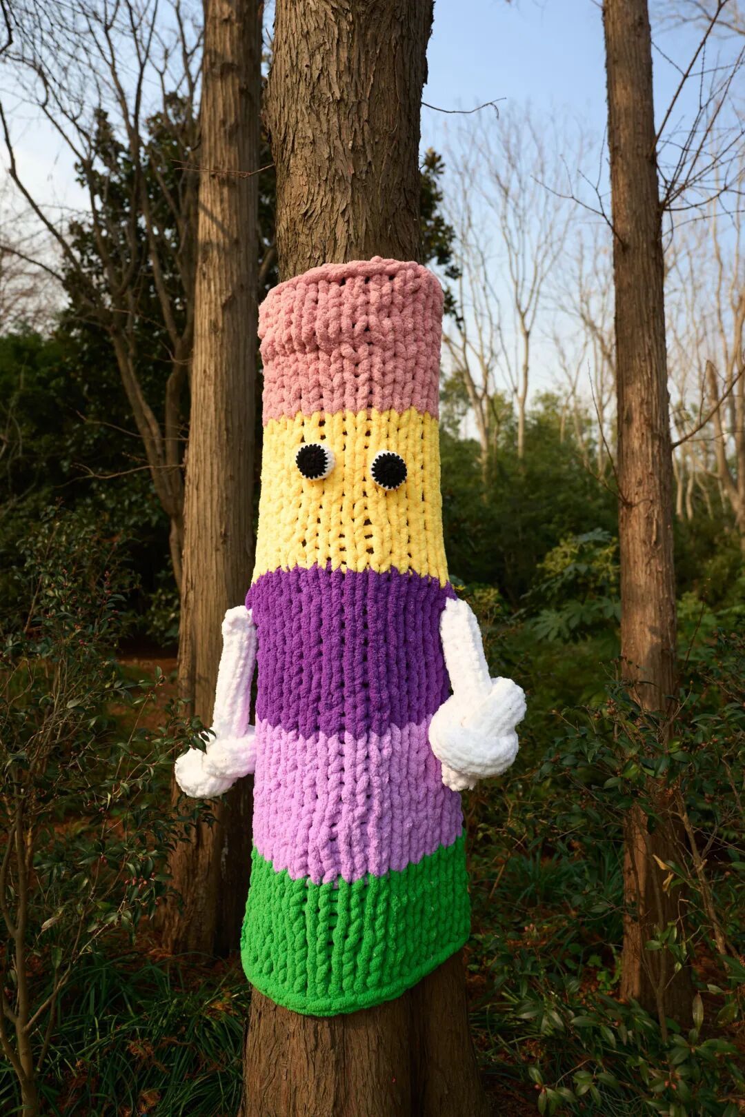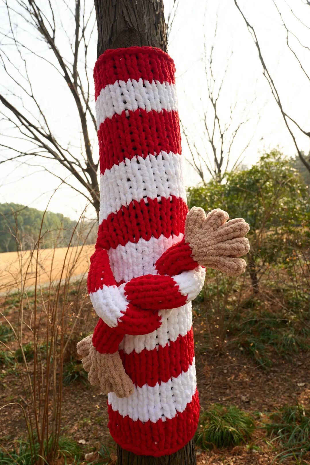 造型各异的大树毛衣裹住枝干