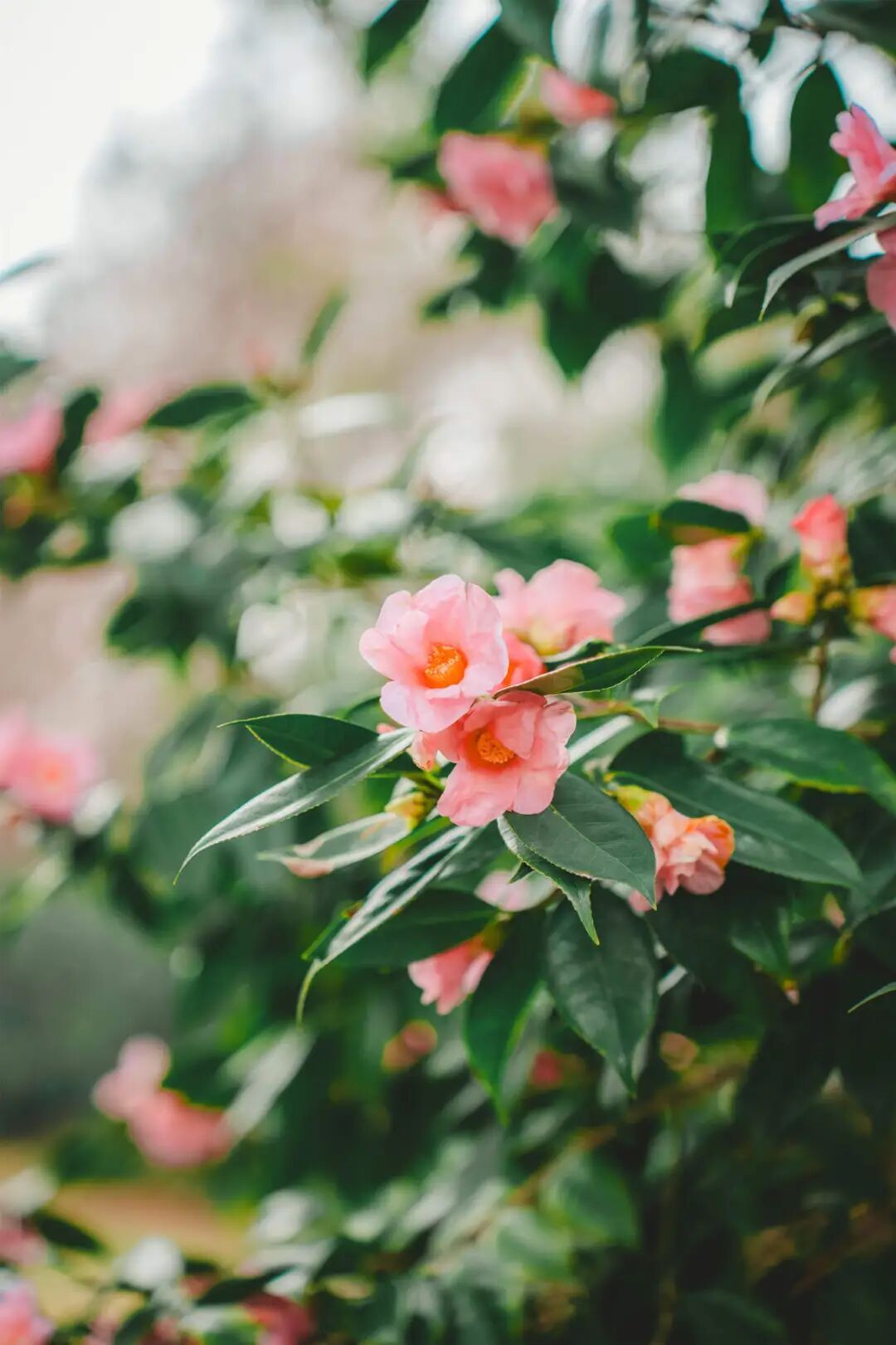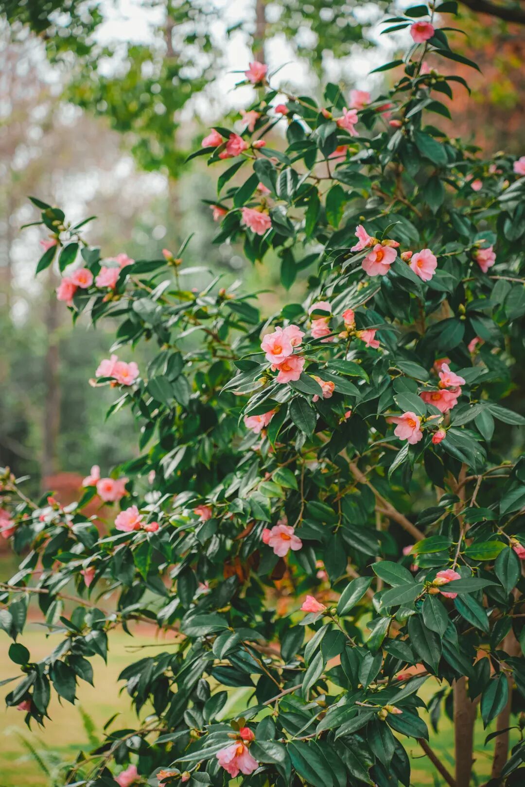 园内梅花、茶花竞相绽放