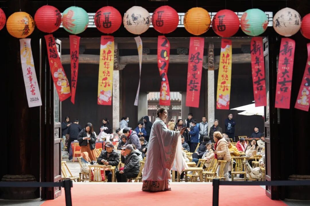 2月10日,恰逢小年,徐汇区华泾镇新春市集活动在西岸自然艺术公园浸想宅院热闹启幕。京歌戏腔婉转、古筝音韵悠扬,传统雅乐与民俗市集相融,为居民送上兼具文化底蕴与节日温情的新春活动。