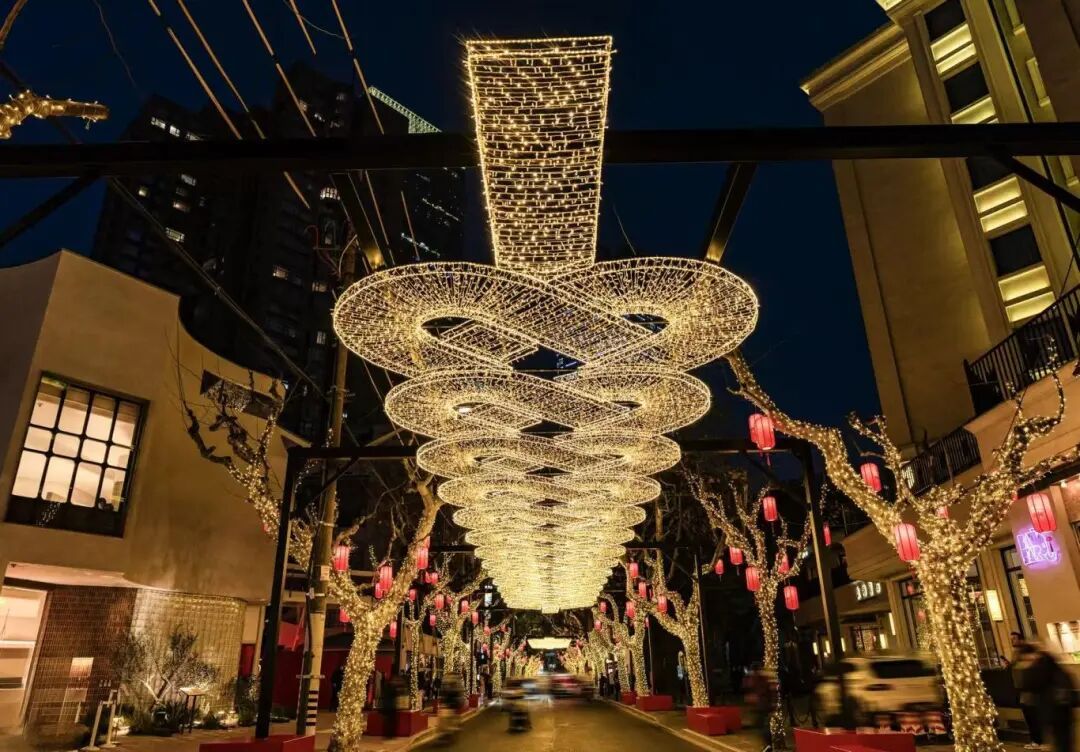 (茂名北路 “闪亮·静安 光影SHOW新春”活动) (五角场商圈灯光秀) (南翔古镇迎新灯饰) (朱家角古镇“福蝶”灯光秀)