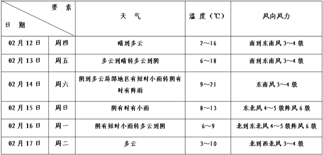 假期中期(初二至初五)以多云到晴天气为主,气温逐日回升,气象条件总体适宜。