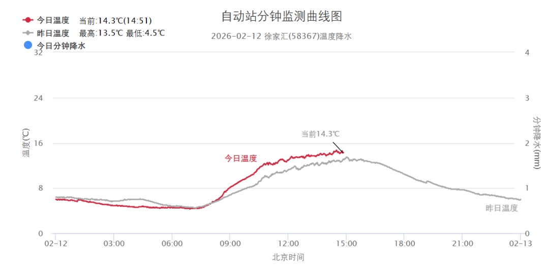 今天闵行最高气温16℃