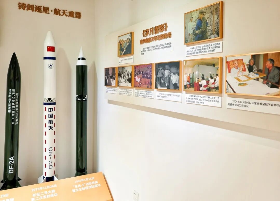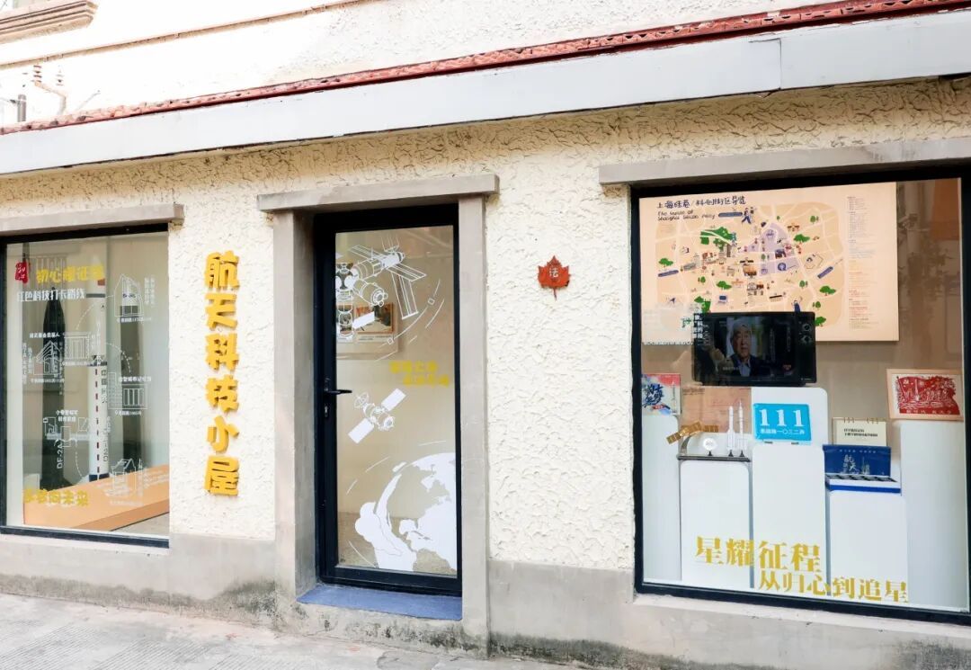 此次改造的另一亮点,是位于愚园路1032弄岐山村弄堂口的“航天科技小屋”。展陈中,“星耀征程——从归心到追星”主题橱窗通过实物、影像与航天模型,立体展示了钱学森为中国航天事业奠基的卓越贡献;“岁月留影”钱学森航天事记影像墙聚焦钱学森在中国航天关键历史节点的身影,记录了中国航天事业的发展历程;“铸剑逐星·航天重器”展区则陈列了部分中国导弹、火箭的等比例缩比模型,并配以图文说明,勾勒出我国国防与航天事业的跨越式发展轨迹。