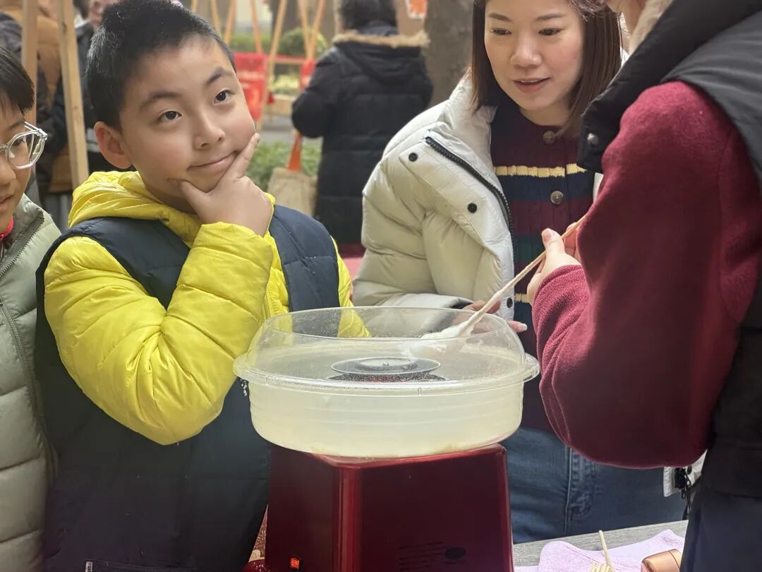 美食区的香气萦绕全场,成为游园会的“暖心亮点”。晶莹剔透的酒酿小圆子冒着热气,甜而不腻、暖胃暖心;红彤彤的糖葫芦裹着晶莹的糖衣,酸甜爽口,是孩子们的最爱;蓬松柔软的棉花糖像一朵白云,咬一口满是甜蜜,唤起了不少大人的童年回忆。居民们一边品尝美食,一边闲话家常,邻里间的默契在欢声笑语中更加深了。
