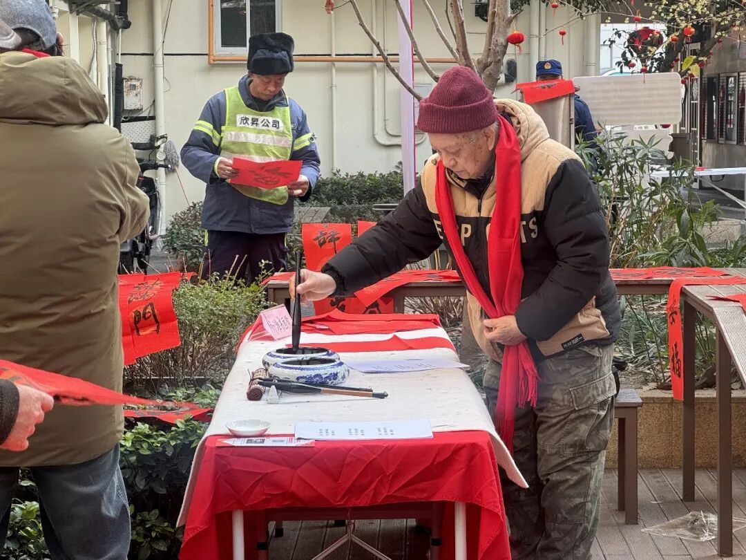 活动现场暖意融融、人气爆棚,各个区域分工明确、井然有序,却又处处透着热闹祥和。笔墨飘香的写春联福字区率先成为焦点,红纸铺案、墨香四溢,书法爱好者挥毫泼墨,一笔一画间,“福暖四季”“马到成功”等吉祥话语跃然纸上,承载着新春的美好期许。居民们或驻足围观、啧啧称赞,或排队等候,期盼能领到一副专属春联。“每年都来领春联,手写的才有年味儿,贴在门上,心里都亮堂!”王阿姨捧着刚写好的春联,脸上满是笑意。