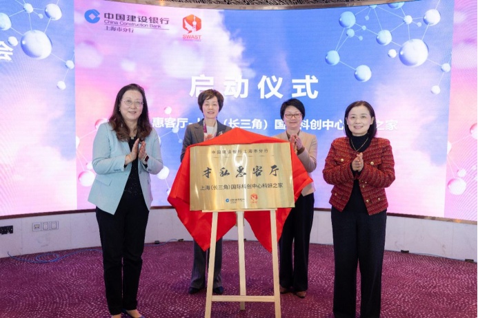 “才私惠客厅——上海(长三角)国际科创中心‘科妍’之家”启动仪式隆重举行。中国建设银行上海分行副行长李莉与上海市女科技工作者协会副理事长、中国科学院上海药物研究所研究员柳红共同为项目揭牌,董依雯、张华共同上台见证。建行上海分行将整合资源,为上海乃至长三角区域的女科技工作者提供人才发展与公益支持等金融服务,助力女性科技人才成长与科创生态建设。