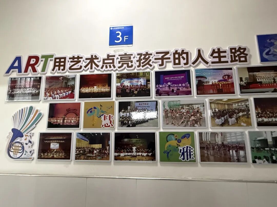 走进教学楼,走廊里张贴着各种乐器的科普介绍,墙面上布置着学生参加各大艺术类比赛和展演的照片。