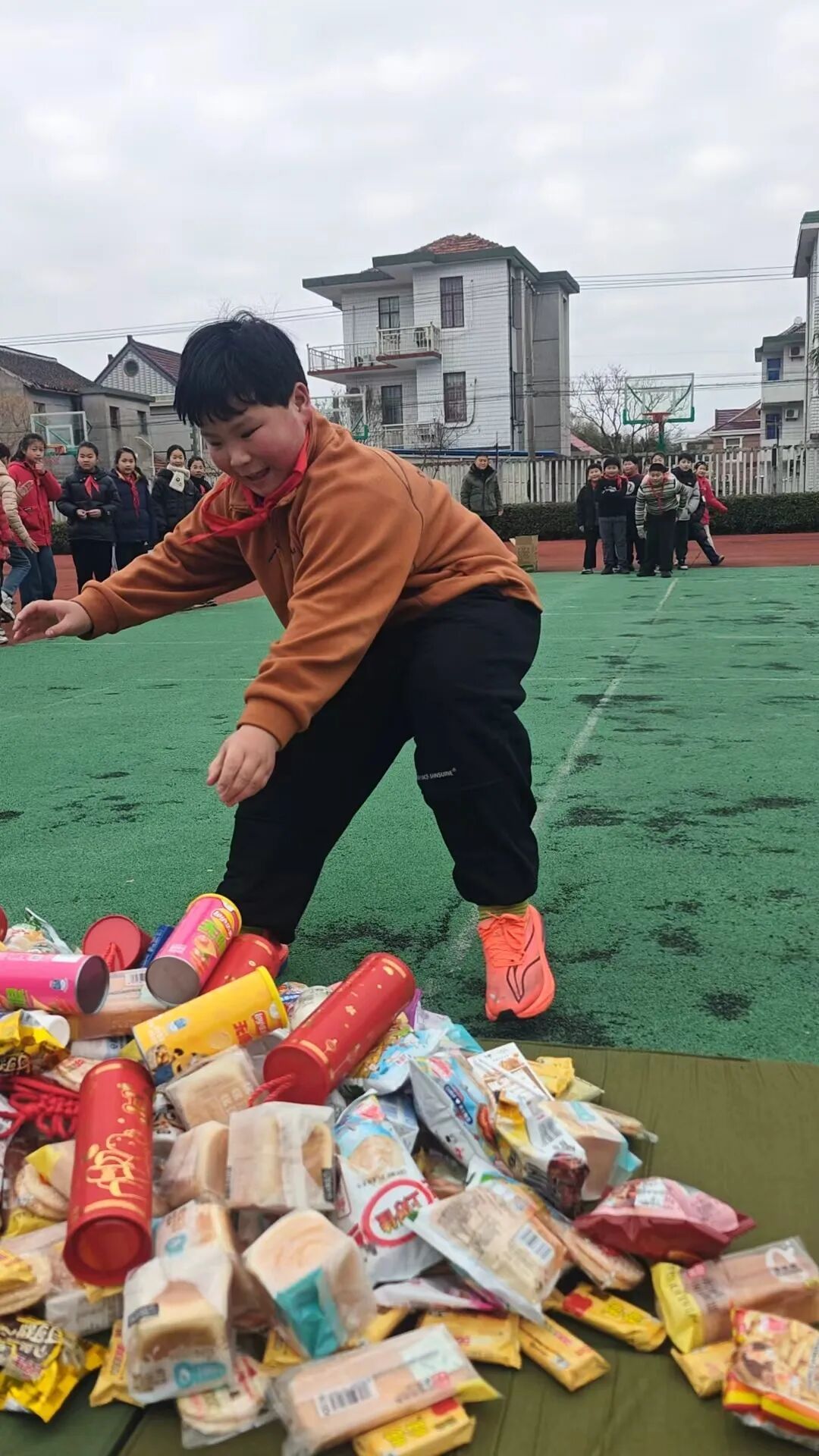 本学期最后一天,学校设计了10米趣味接力赛,作为活动的收官,“我们准备了独立包装的零食,每个学生与2名教师组成参赛队伍,手持零食往返接力。”副校长施燕说,“赛场上没有紧张的对抗,只有欢声笑语的追逐。”