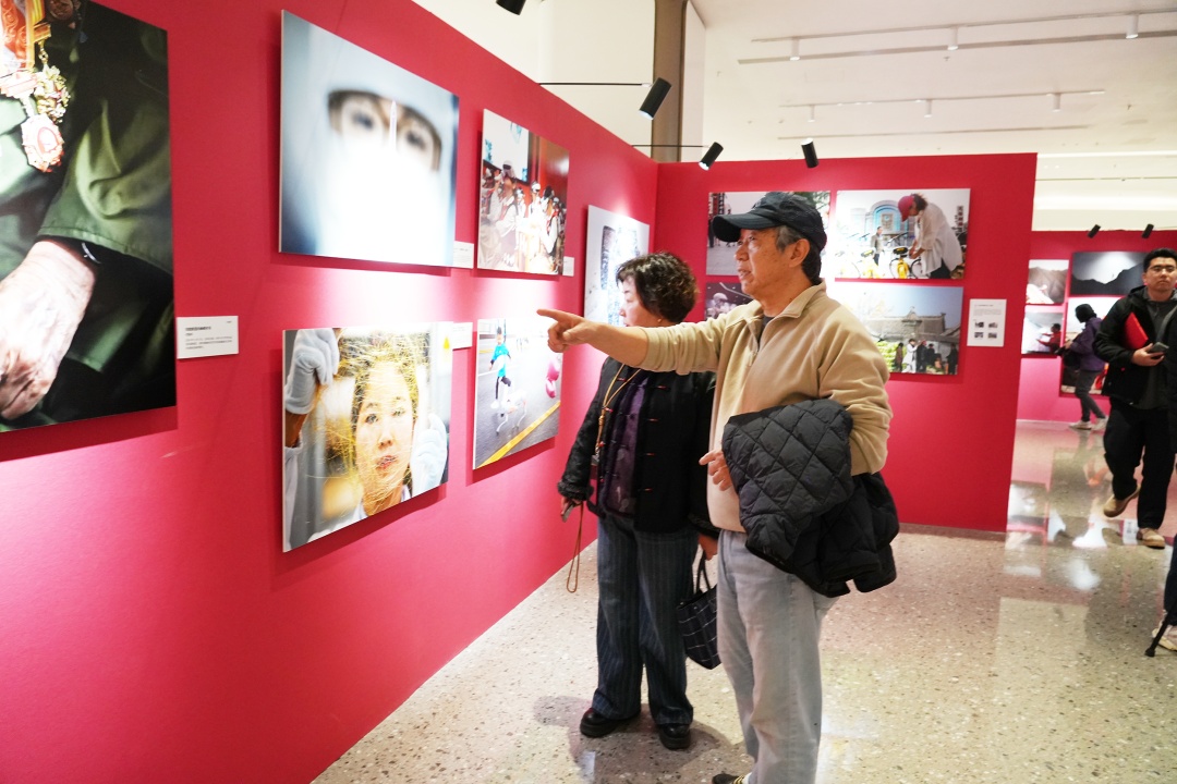 另一组引人注目的作品是上海摄影师许文君的《溯源抗战记忆:英烈艺术的寻根之旅》。镜头定格了英烈遗孀在儿子搀扶下靠近淞沪抗战纪念碑的动人瞬间。许文君表示:“我想用我的相机,把这段历史记录下来,把这段故事传播出去。”