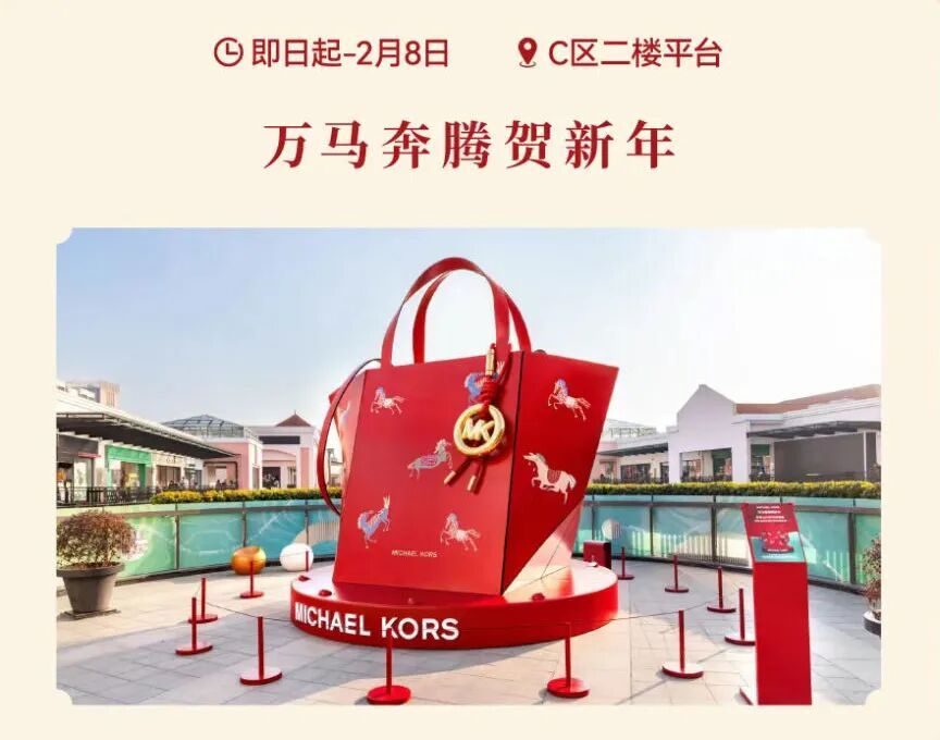 百联青浦奥莱推出“+”马营销活动。400+品牌低至1折起,更有会员福利持续加码。打造马年特色春节美陈,逐光跃梦美陈、2026美陈、MK新春包袋美陈等精彩纷呈,游客可与广场迎新景观拍照打卡,发帖赢好礼。推出新春音乐会、新春非遗布马舞迎财神等多元线下非遗互动体验。