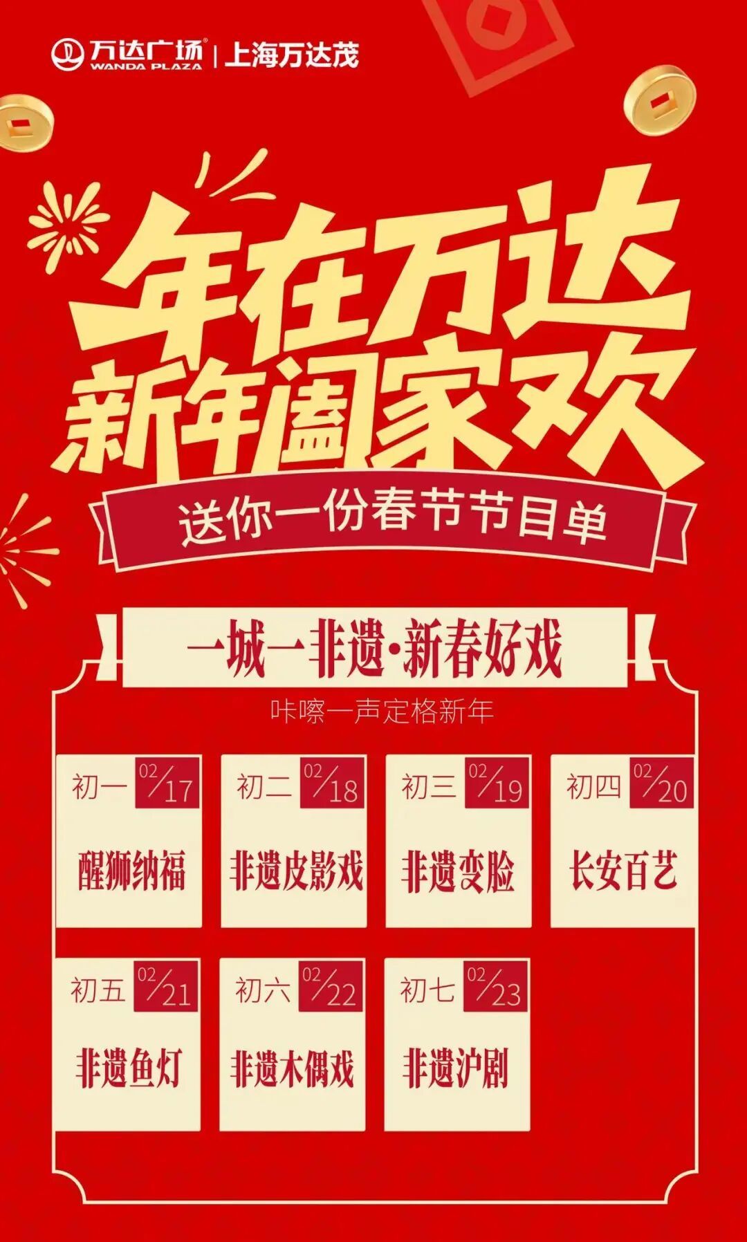 青浦万达茂推出“年在万达 新年阖家欢”主题系列活动,一城一非遗·新春好戏、沪上闹春集、新年薅羊毛攻略等,游客还可领取专属权益礼包等 ,进一步激发节日的消费热情。