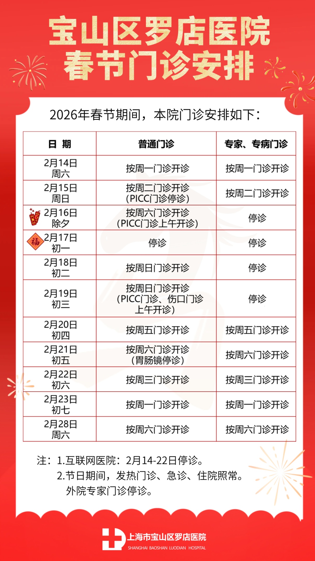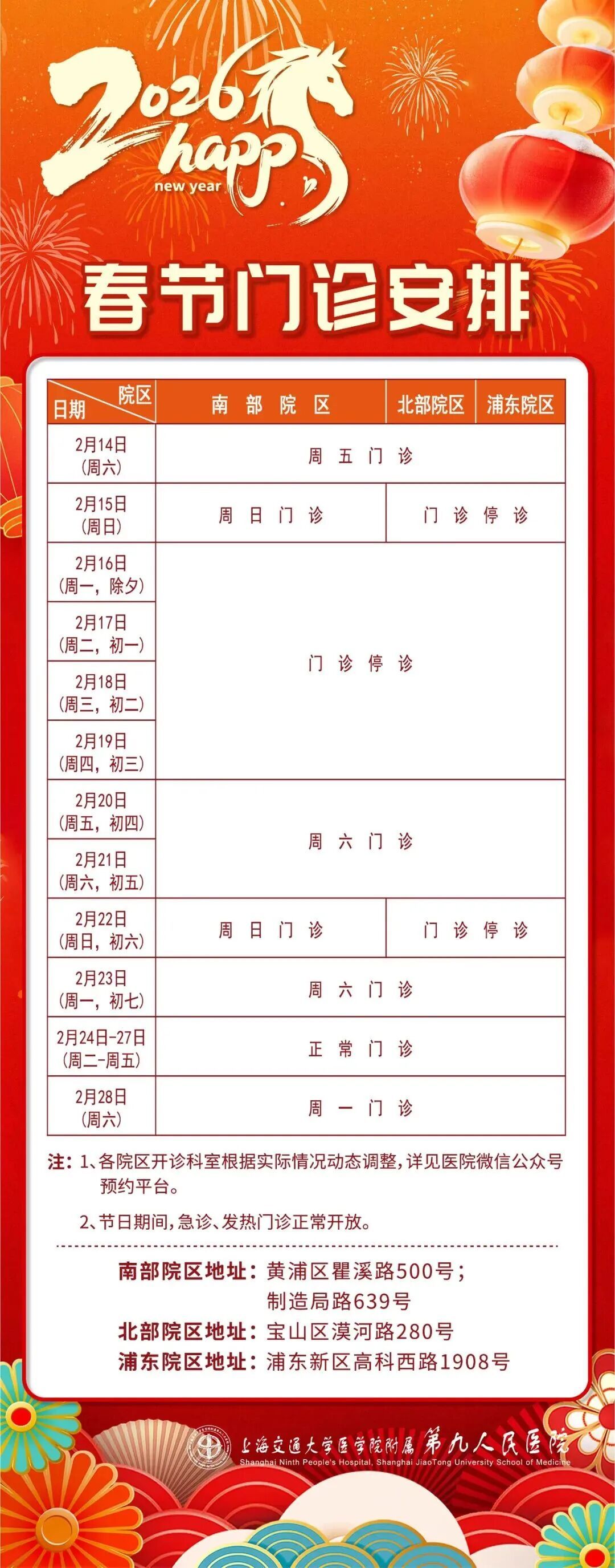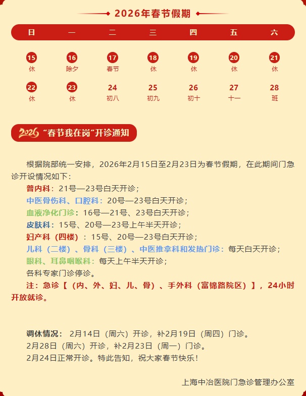 2026年春节即将到来,小编汇总了宝山区各综合性医院以及各社区卫生服务中心元旦假期的门、急诊时间安排,快转给有需要的朋友吧!