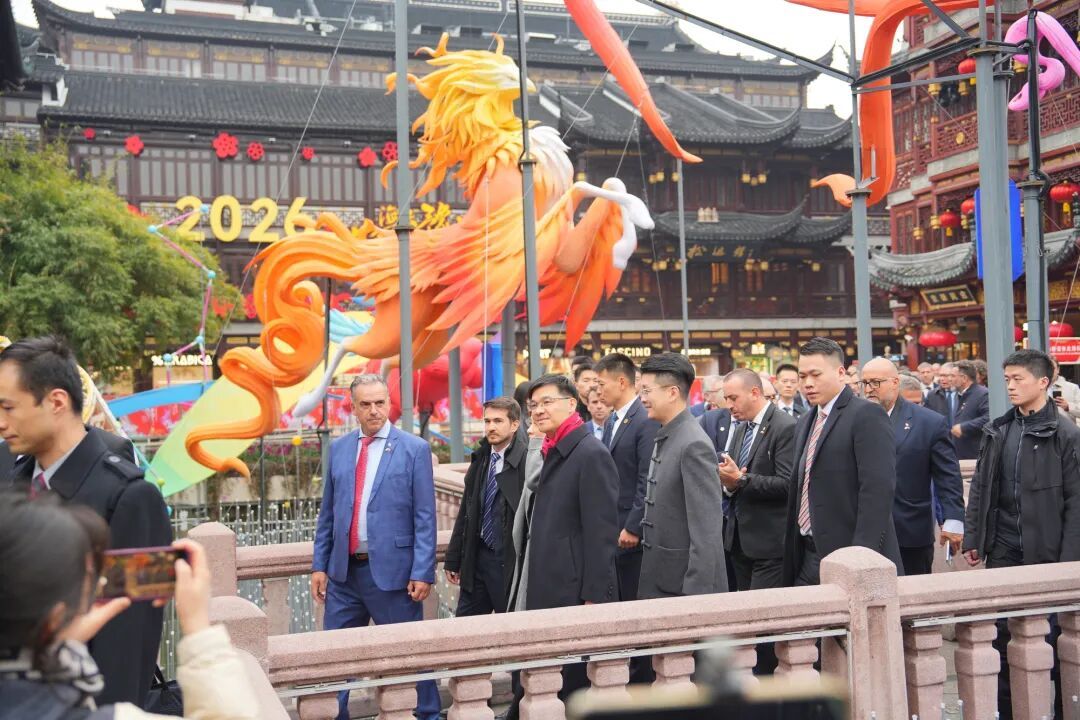 灯会的国际影响力在今年达到新高。英国首相与乌拉圭总统先后到访豫园灯会,赏灯景、购蝴蝶酥、湖心亭品茗、观赏上海表,带火了豫园里的一众老字号品牌。元首级别人物的参观迅速成为海内外媒体报道的热点,进一步扩大了灯会的全球知名度。