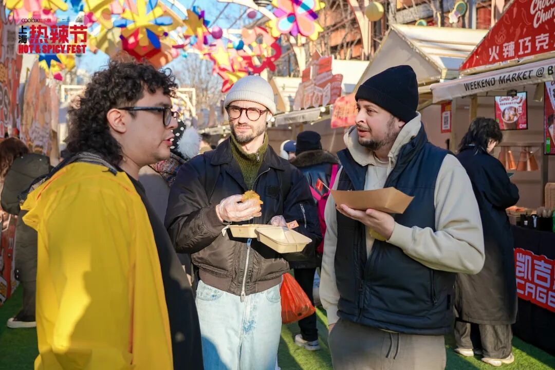 灯会现场,外国游客的身影随处可见:在豫园商城中心广场“骏驰九州,步步生花”主灯组前,一群外国游客仰头驻足,连连赞叹;BFC枫泾路市集上,来自各地的游客被琳琅满目的中国美食吸引,跃跃欲试。外国友人穿梭于灯影、非遗演绎与年味市集之间,沉浸于纯正的中国年节氛围之中。