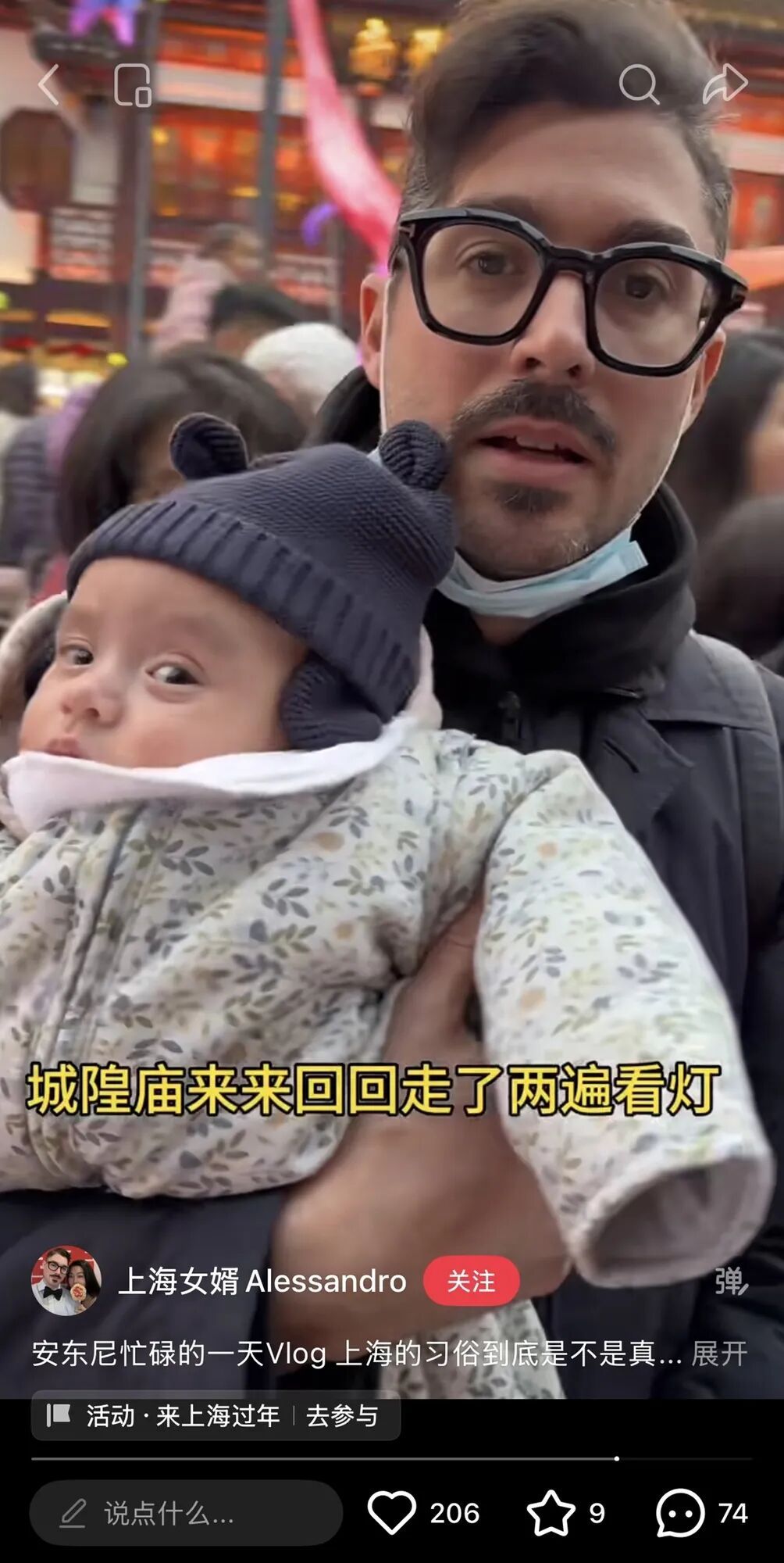 外国游客也自发成为传播“上海年味”的重要力量。Instagram、TikTok等国际社交平台上,豫园灯会相关内容持续飙升;而在中国本土的小红书等平台,也有越来越多外国博主分享赏灯游玩体验。来自美国的老外博主Chris在小红书上说:“豫园灯会的马灯太绝了!从豫园一路玩到BFC,真的太开心了!”
