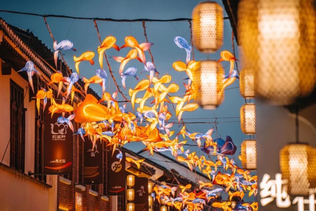 除了道路两侧连绵不断的节日装饰,区内各大商圈的“年味赛场”也悄然升温。这两天,嘉定宝龙广场已悬挂起整整一万只灯笼,在夜色中显得格外喜庆。