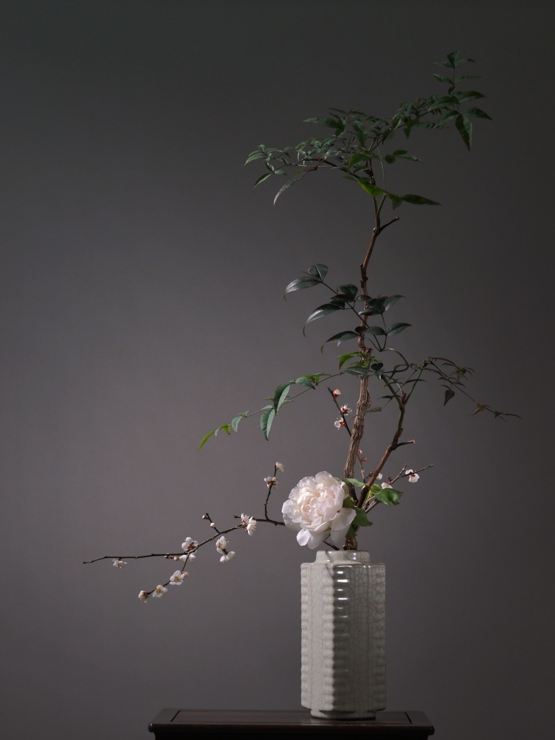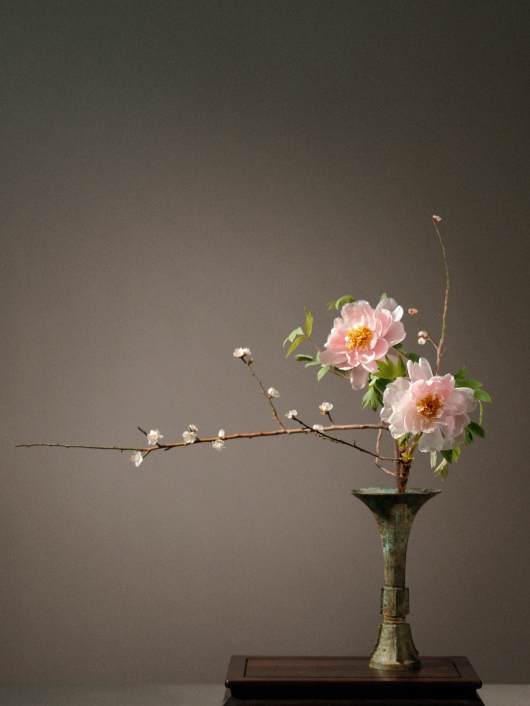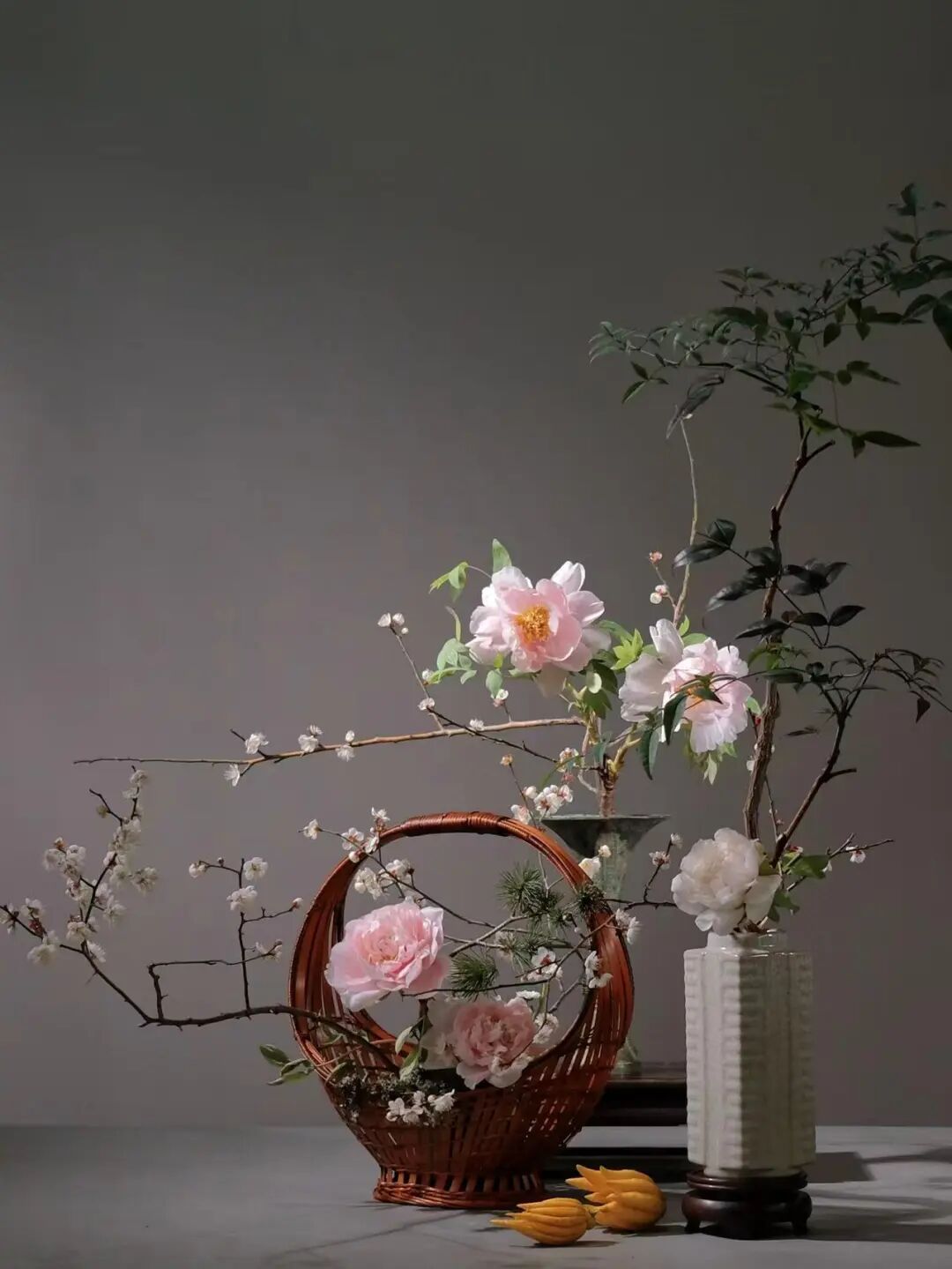展览特邀传统瓶花实践者、袁氏瓶花非遗传承人李峙毅担纲插花创作。李峙毅以古雅为宗,融当代空间审美,为传统文人瓶花赋予新的生命。其作品或取梅之孤峭、或借松之遒劲,在一器一花间,承续千年未断的风雅脉线。