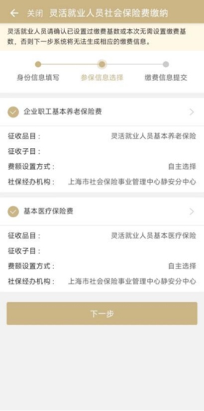 ③进入参保信息选择界面,确认无误后点击“下一步”,可以切换查看日常缴费和特殊缴费不同类型的应缴信息。
