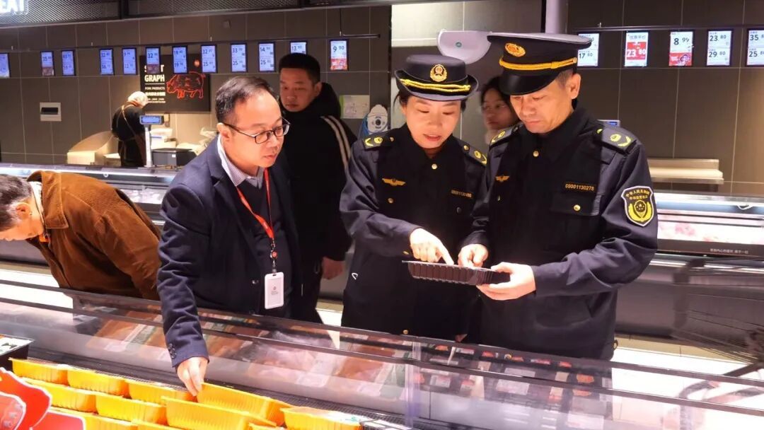 而在商超内,执法人员则重点检查肉制品、生鲜食品以及节日礼盒等热销商品。执法人员仔细核对产品标签标识、保质期限和进货凭证,杜绝过期食品、虚假宣传等问题。