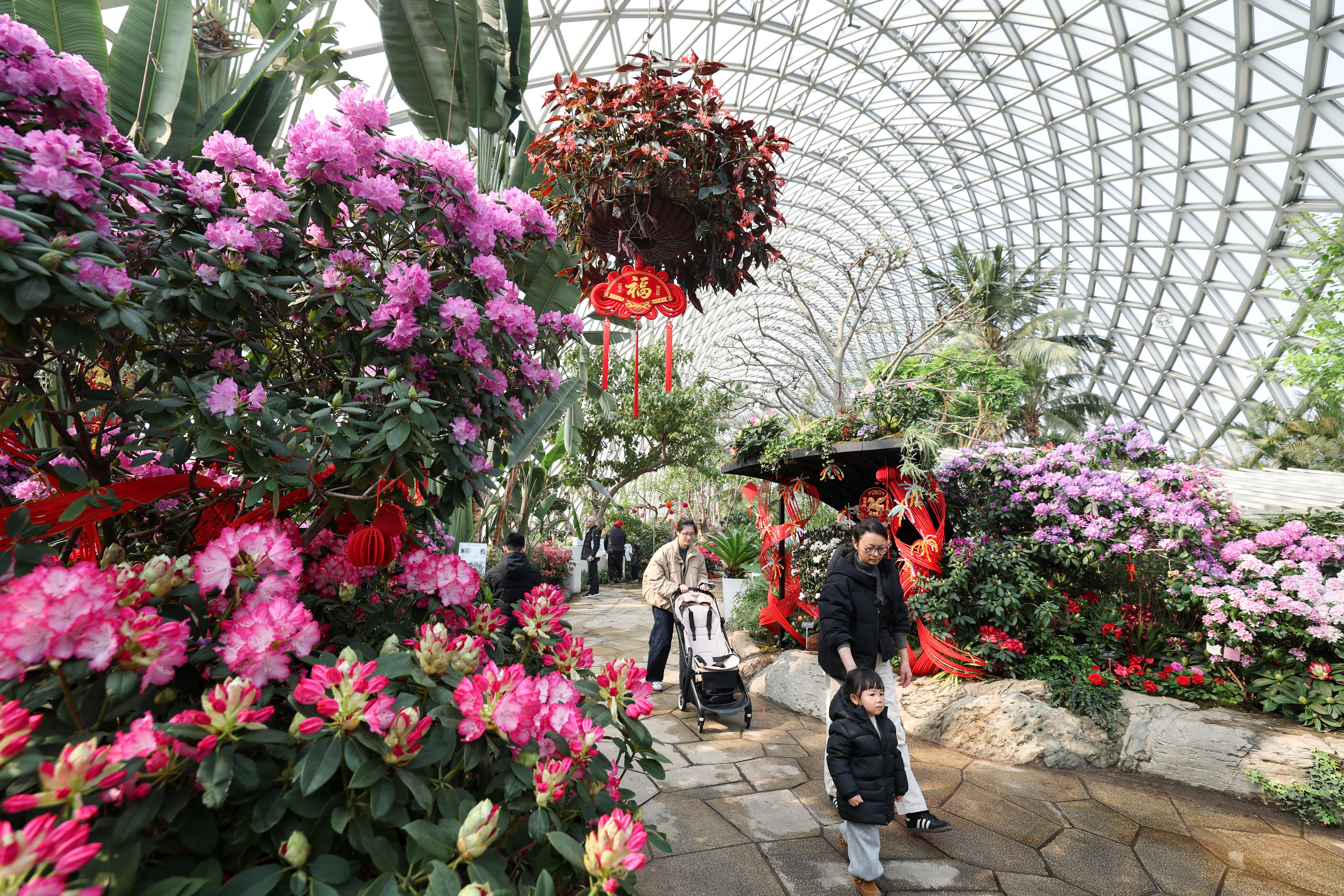 2月16日至3月3日,辰山植物园将举办“骁腾丹韵 春启新程”迎春花展及系列节庆活动,目前布置工作已基本完成。本次花展以牡丹与高山杜鹃为主打花卉,串联“骁腾迎春”“踏雪寻梅”“驰骋芳华”“漫游绮鹃”“国色揽珍”五大主题展区,融合中国春节传统元素与2026丙午马年寓意,为市民游客献上独具辰山特色的早春花海盛宴,打造集观赏性、科普性、趣味性于一体的沉浸式赏游体验。 记者 姜辉辉 摄