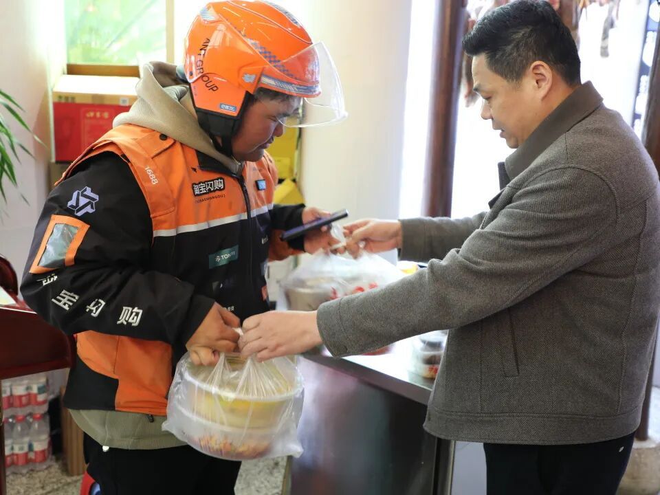 菜做好了,谁来送?怎么送得及时?城西街区党支部得知活动需求后,立马对接淘宝闪购西渡站站长岳万林,不到半天,一支“爱心配送队”便完成组建。骑手们利用送单间隙或轮休时间,随时关注“爱心年夜饭”对接群里的任务。有骑手说:“送过那么多单,这一单跑得最有意义。”