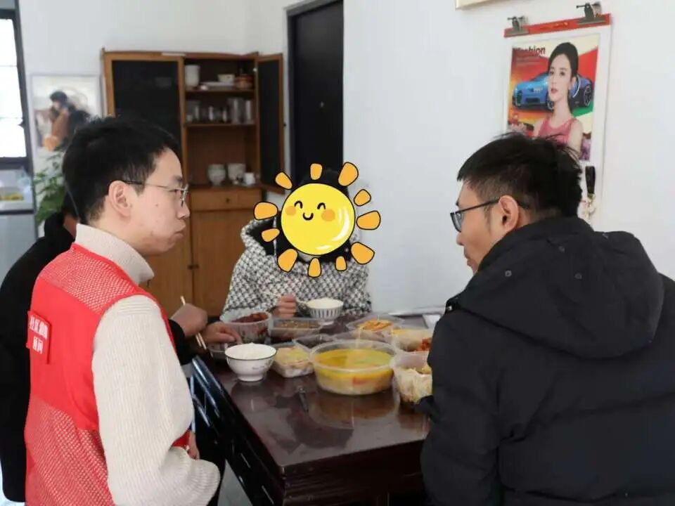 考虑到其中一户孩子平时跟祖辈生活,吴涛在上门慰问时特地多留了一会儿,陪孩子吃了一顿团圆饭。饭桌上,他一边为孩子夹菜,一边询问近期的学习和生活情况,鼓励孩子保持乐观心态、好好学习。老人动情地说:“没想到年夜饭还能送到家里来,孩子高兴得一早就等着了。”举杯间,是新春的问候,也是被惦记着的温暖。