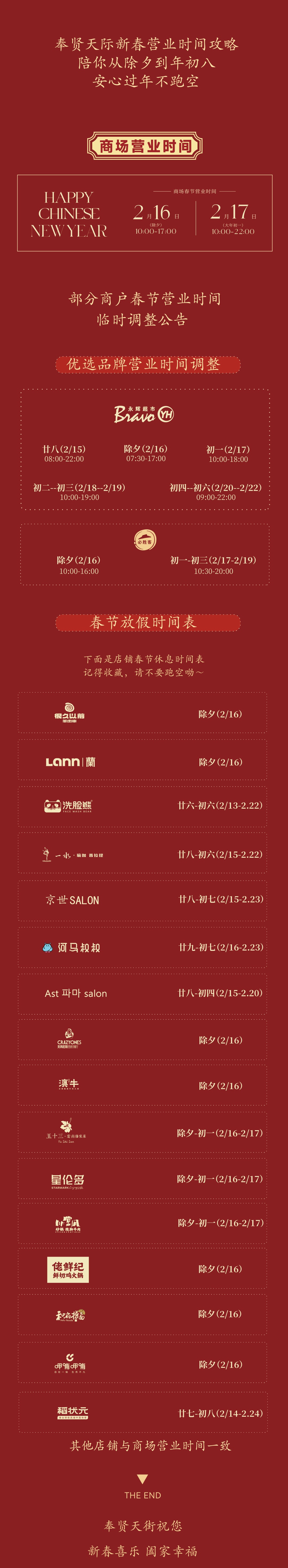 传悦坊春节期间正常营业,时间10:00~21:30,各商家营业时间以店内告示为准。