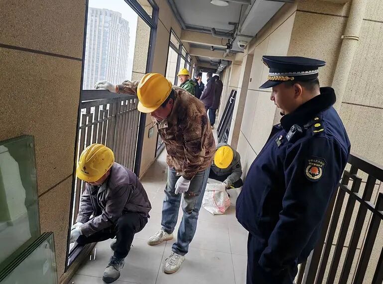 此外,对于电动自行车违规充电、楼道堆物、群租等高频安全隐患,执法队员和“三驾马车”联合构建起“网格化排查+联动整治”机制,将整治力量延伸至每栋楼宇、每个单元,对发现的私拉电线协同物业当场剪除,对违规停放车辆予以清理,同时督促物业规范充电桩管理,确保电气线路敷设合规、消防器材配备齐全。此外,以“敲门行动+现场执法”模式,逐户上门宣传消防安全知识,责令业主限期清理杂物,对存在消防隐患的群租房依法责令整改,有效打通生命通道。