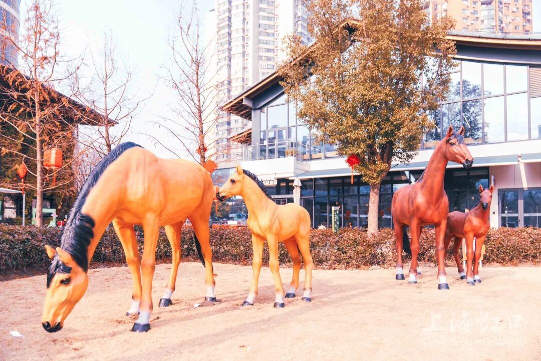 为烘托马年春节的节日氛围,公园还在5号门附近的大草坪上,布置了几匹英气十足的仿真马,吸引市民游客纷纷拍照打卡,为公园增添了一道别致又应景的新春风景线。