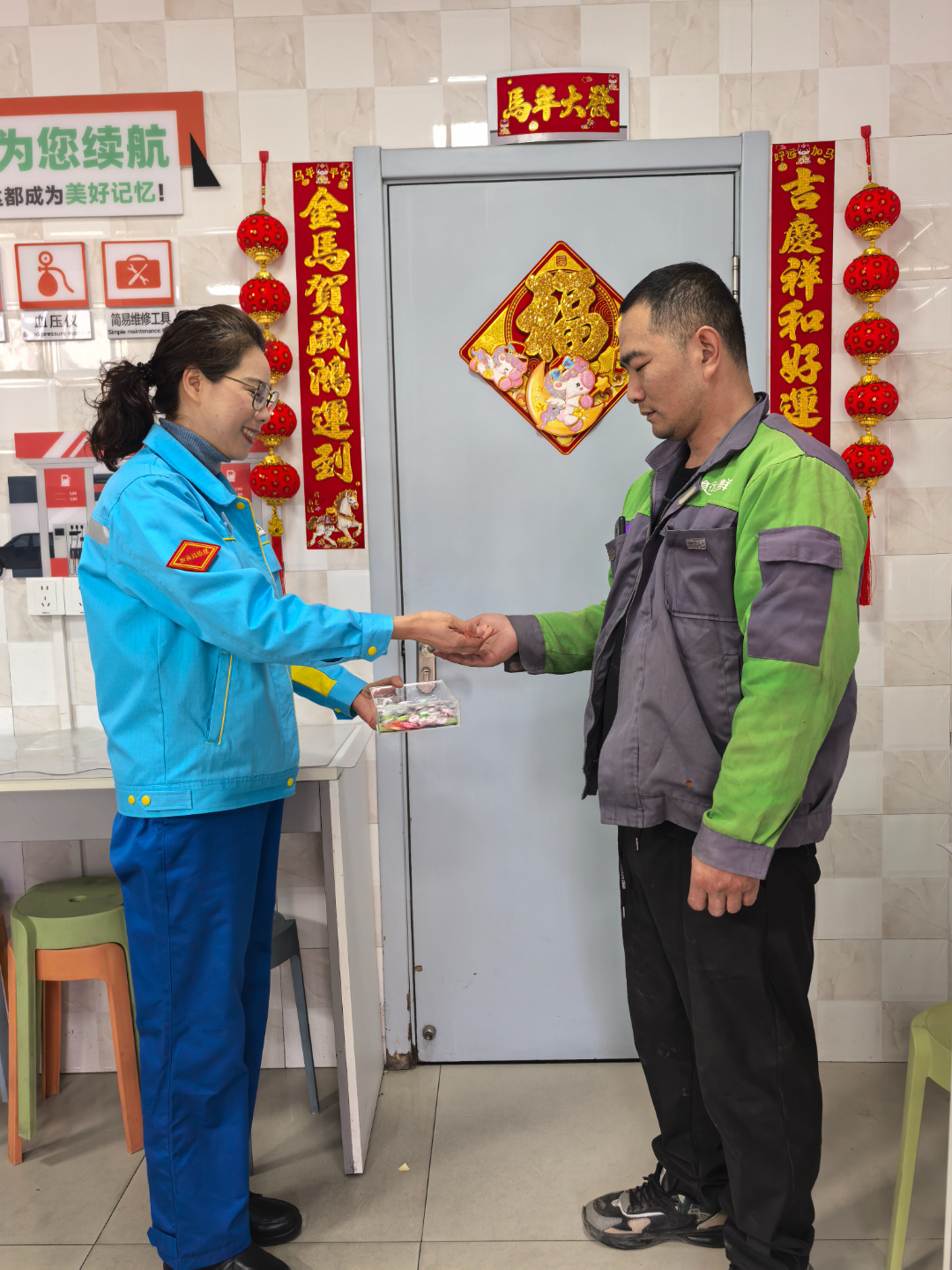 袁婷婷顺手摆上喜糖,新就业群体的司机朋友们随手拿一颗,微信群里“恭喜”刷屏,朴素的甜,正是袁婷婷打造暖心驿站的初心写照——让五湖四海的劳动者,在这里感受家人般的牵挂。在她的带动下,“共享喜悦、共暖彼此”成为暖心驿站里的无声约定。