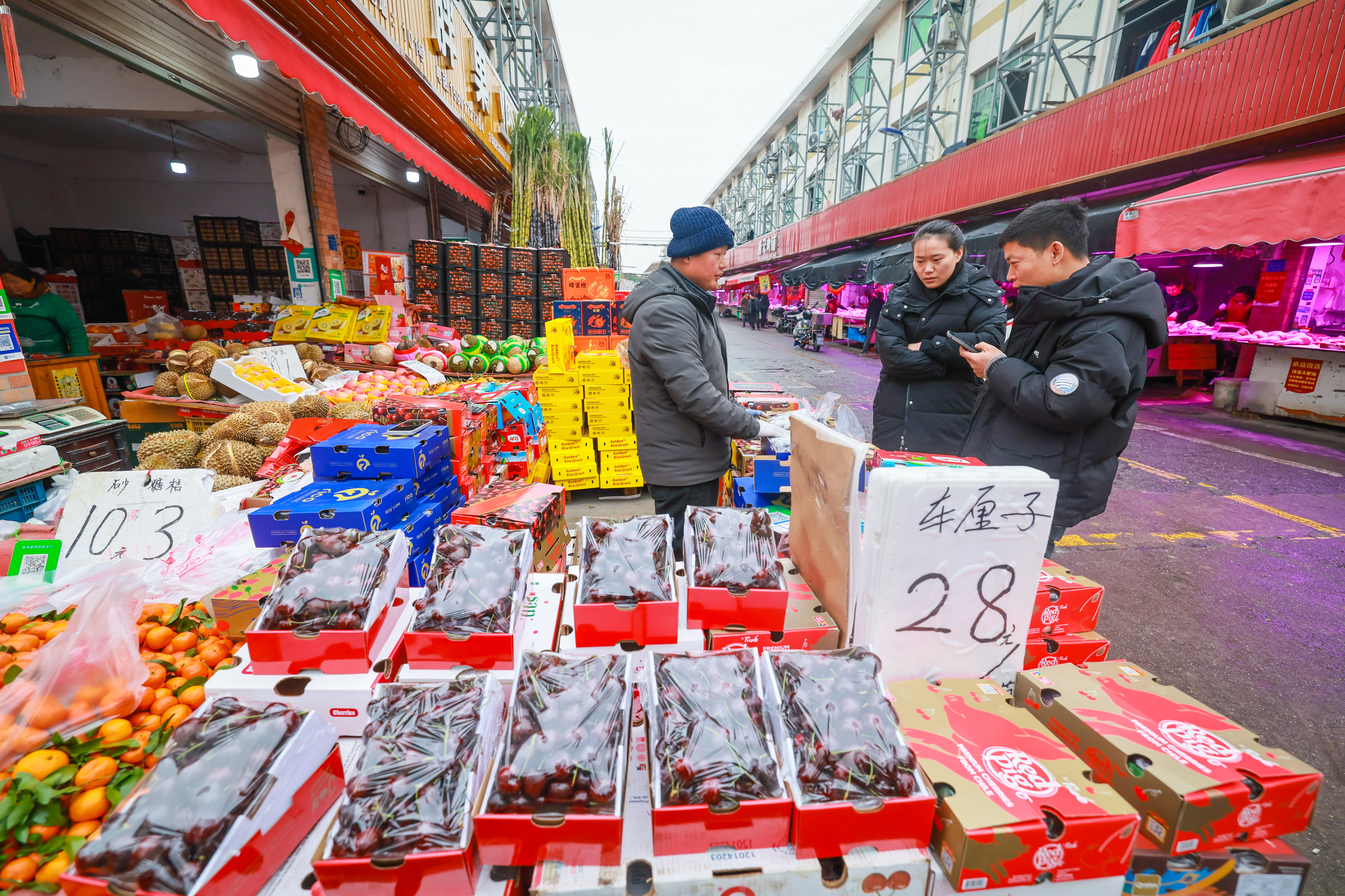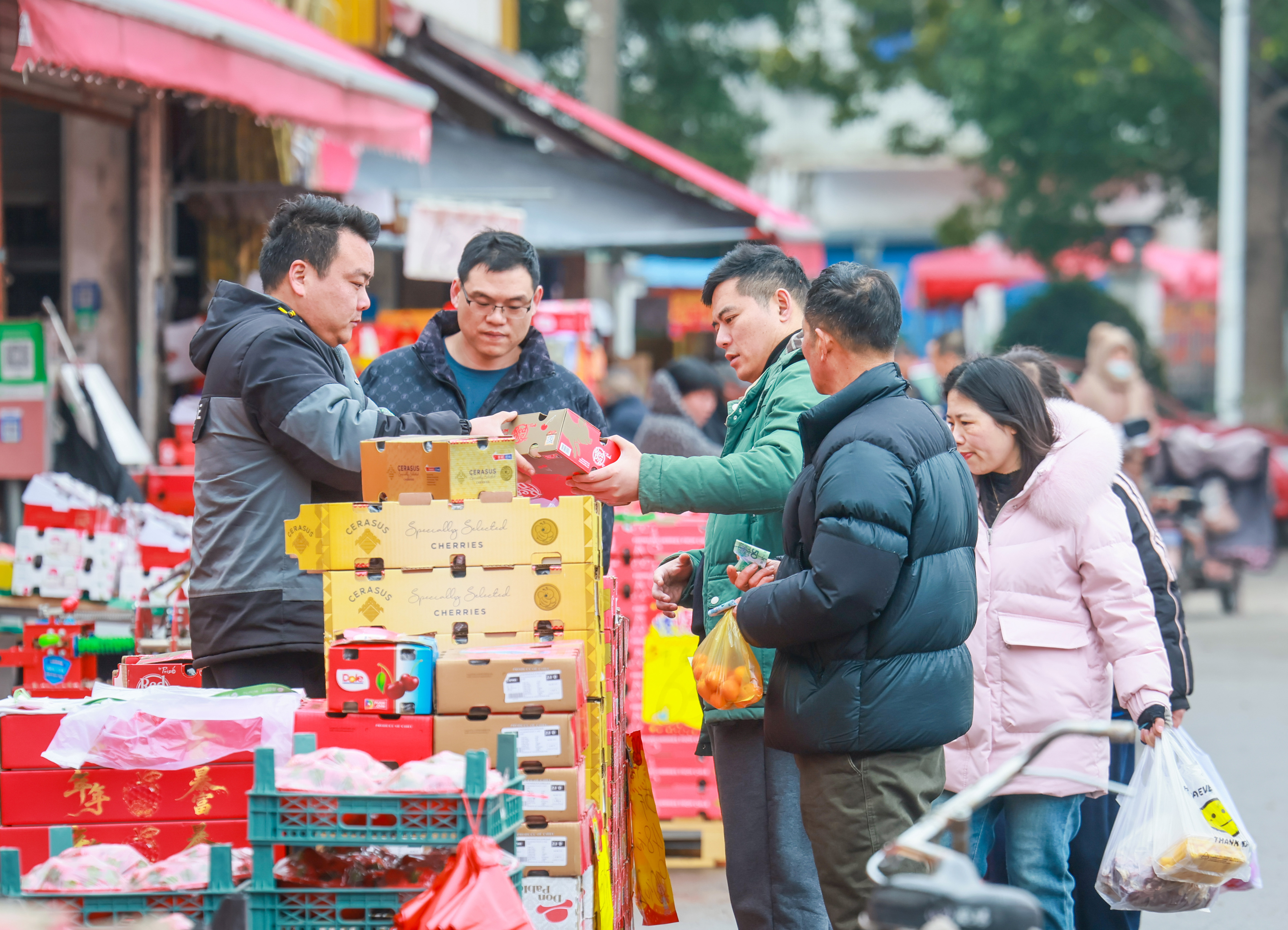 市场人头攒动,大家忙着选购年货,迎接新春的到来