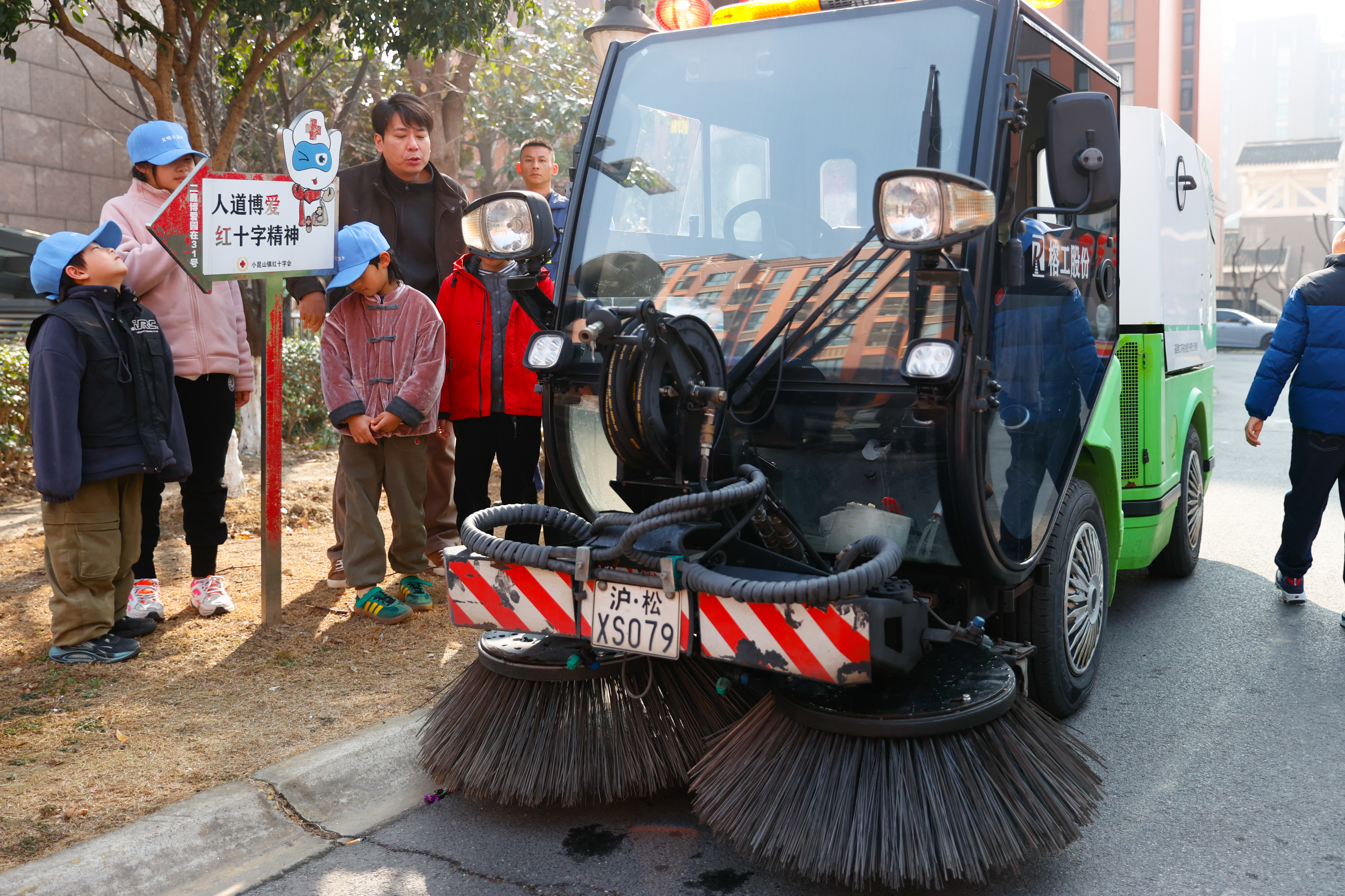 2月12日上午,小昆山镇开展了“小手传文明,环保践于行”环保知识活动。活动通过垃圾分类知识讲解、趣味分类游戏、智能垃圾车参观及社区垃圾清理实践等环节,引导孩子们在亲身体验中理解环卫工作价值,培养尊重劳动、践行环保的意识。 记者 高雨 摄