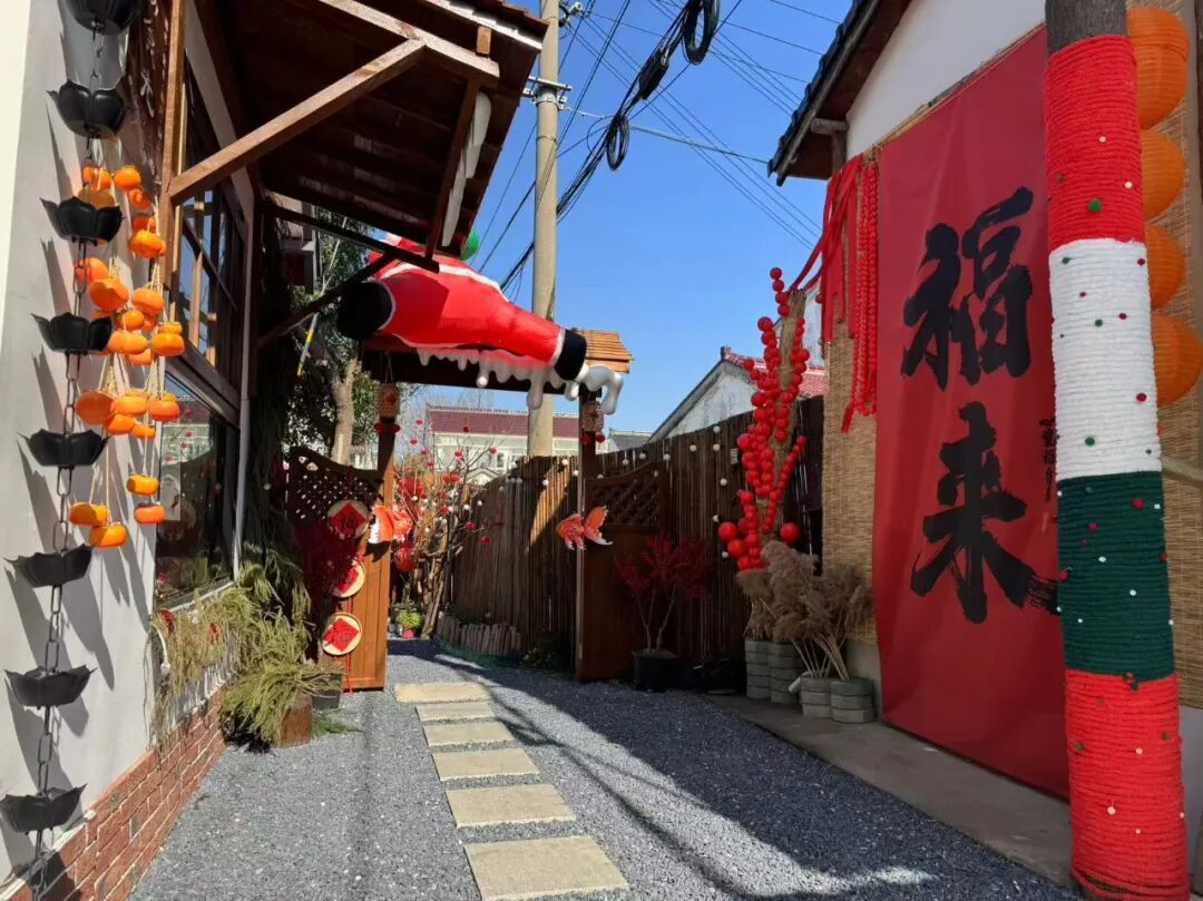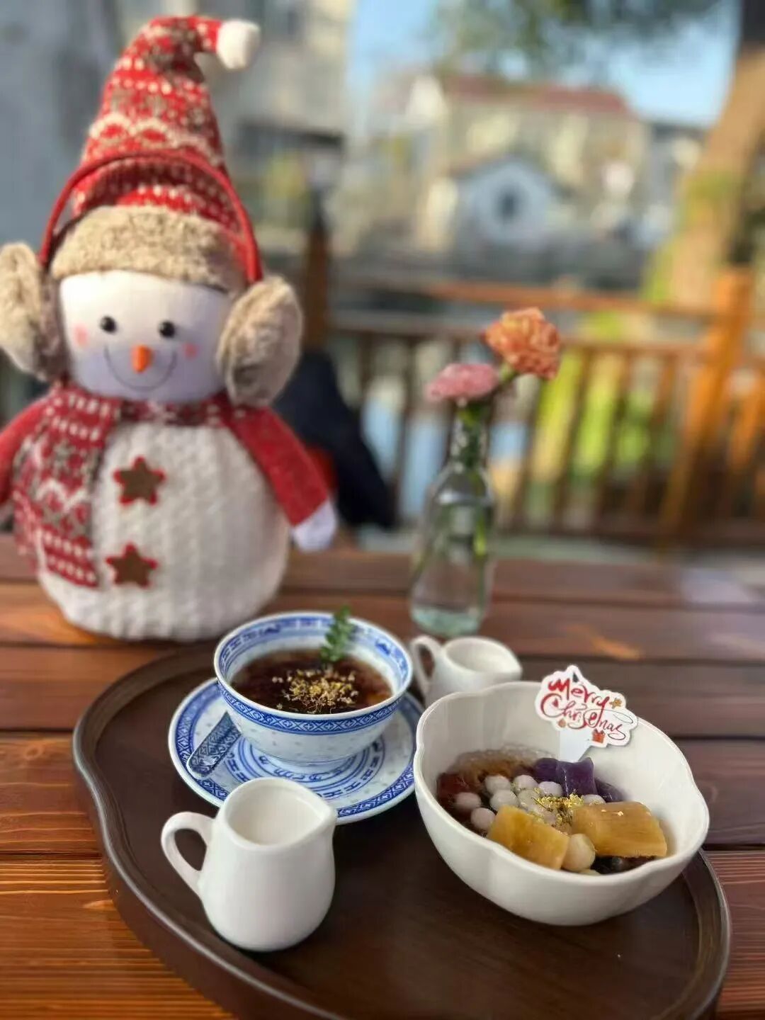西岑村的乡村咖啡馆“木易食光”,由返乡创业的本村村民杨丽慧主理。咖啡馆由乡村民居改造而成,坐拥前后庭院与室内空间,被小湖环绕,兼具水乡静谧与现代设计感。店内以原木桌椅、暖光软装等营造温馨氛围,院落视野开阔,是观赏乡村景致的绝佳位置;店外可体验围炉煮茶,搭配手工坚果酥等点心,成为兼具休闲、社交与打卡属性的乡村新空间。