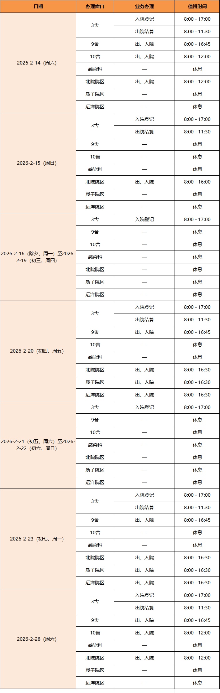 假期出入院安排