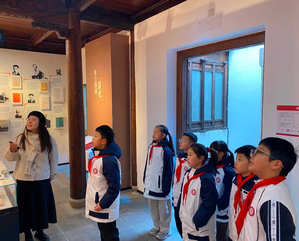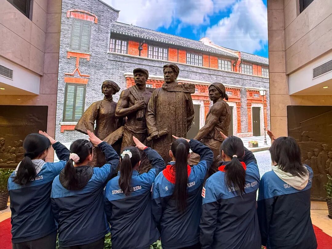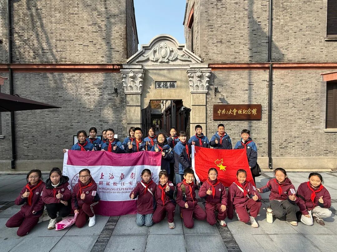 上戏松江附校的少先队员们高举队旗走进中共二大会址纪念馆。队员们聆听讲解、细观首部党章、触摸修订脉络,在历史与现实的对话中感悟初心,让红色基因融入青春血脉。