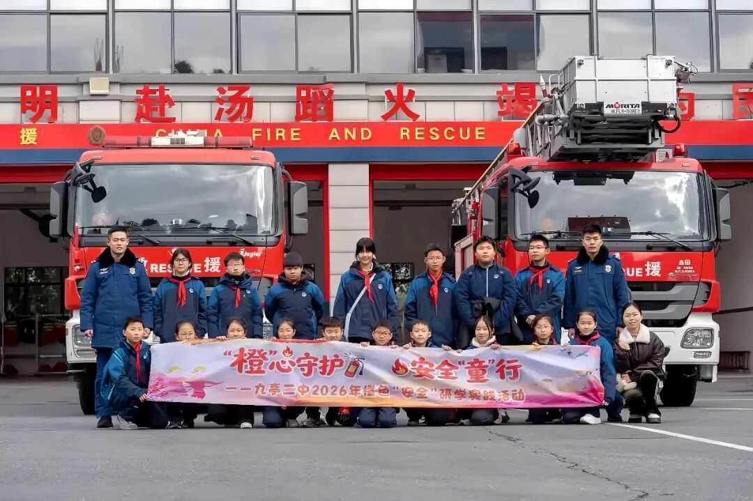 九亭二中导师带领学生走进九亭镇消防站,开展寒假“橙色”安全研学活动。同学们参观消防装备、试穿战斗服、登上消防车,聆听消防员讲解消防知识,在互动问答中学习安全技能,为平安寒假筑牢坚实防线。
