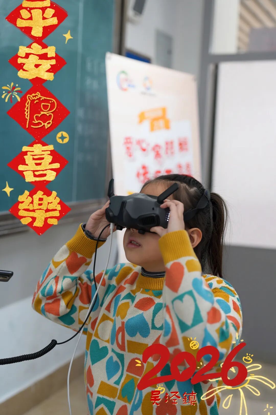 无人机科普中,孩子们戴上VR眼镜穿梭于教室走廊