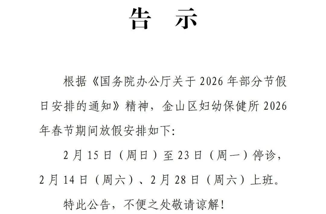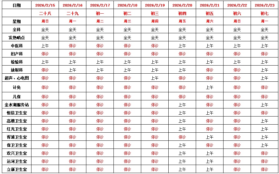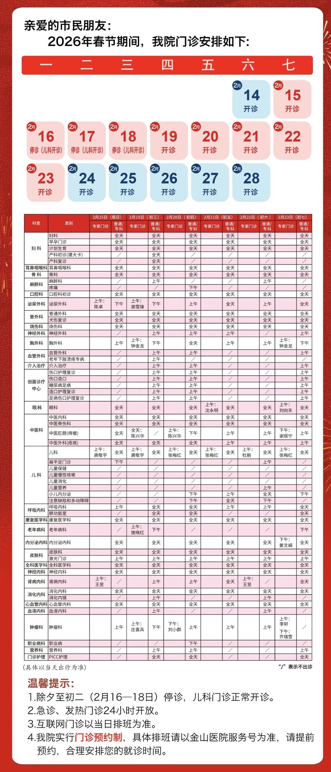 春节假期即将到来,小编整理了其间金山区部分医疗机构门诊开设时间,详情如下:
