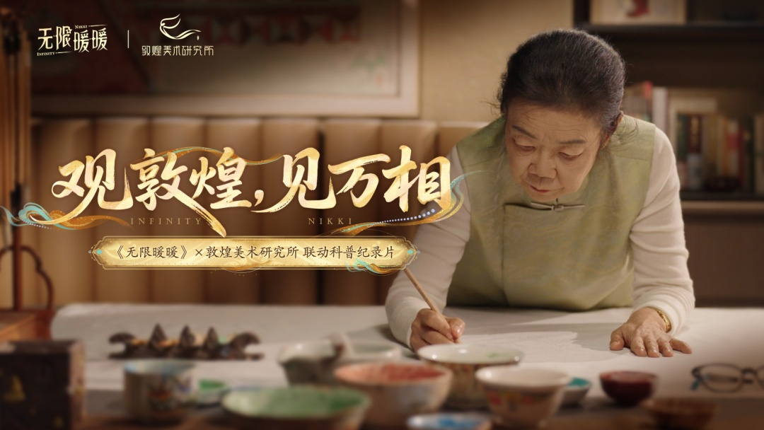 此外,《无限暖暖》更邀请了非遗传承人、敦煌壁画复原临摹艺术家史敦宇,一起拍摄了科普纪录片。这位自幼扎根莫高窟、与壁画相守七十余载的学者后人,以毕生积淀为文化传承保驾护航。