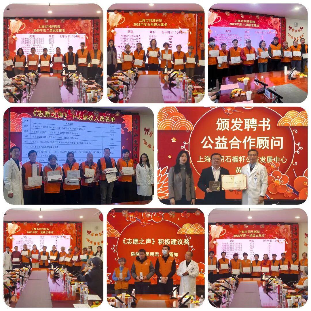 吴登龙在致辞中表示:在过去一年的医院“优质服务年”建设中,“早安同济”“午间守护”“志愿之声”等创新探索,离不开志愿者的默默支持。从门诊导医到病房陪伴,从公益理发到深夜守护,志愿者们用真情构筑起医院优质服务体系中最温暖的底色。 随后王嫱做了2025年度志愿服务工作汇报。依据2025年度志愿服务时长,现场表彰星级志愿者62人,其中五星级8人、四星三星共13人、二星级13人、一星级28人。领导先后为受表彰的志愿者们颁发了证书。表彰环节后,吴登龙代表医院为黄亮颁发“公益合作顾问”聘书及奖牌,感谢其多年来对医院志愿服务工作的鼎力支持与公益联动。随后,“志愿之声”十大建议奖同步颁发,这些来自一线的金点子成为服务优化的宝贵源泉。总务处副处长(主持工作)蒋义权、信息处副处长吴晓芬为获奖代表颁奖;财务处处长方舟、患者服务中心副主任陈宇婕为“积极建议填报奖”获得者送上纪念品。 星巴克同济医院店店长张月华也是门诊导医志愿者。她把手冲壶带到现场,在咖啡香气中分享“咖啡”与“志愿”的共同语言——专注、耐心、温暖他人。几位志愿者也上台亲手体验手冲,成就感溢于言表。 咖啡余香未散,欢乐接力开启。传声筒传出一路欢笑声,抢凳子拼出满堂喝彩,听歌识曲挖出隐藏的“中华小曲库”。每轮游戏胜出者喜提经络拍打袋,实用又暖心。 抽奖环节紧随其后,气氛一次次被点燃。一份份精心准备的礼物,承载着医院对志愿者的感谢与祝福,在笑声中被送到幸运儿手中。 抽奖的热烈尚未平息,癌症康复俱乐部会长刘建强走上台,为全场志愿者送上新春祝愿:“愿大家新的一年身体健康、心中有爱,志愿路上继续温暖同行。” 过去一年,志愿者们用耐心的指引、温暖的问候,让“同济志愿”四个字有了温度;今天,换一场轻松的相聚,把感谢说出口,把祝福送到手。2026年,同济医院社工部将继续与志愿者并肩同行。愿在新一年的晨光里,我们继续做彼此的光;在患者的笑容里,继续收获出发的力量。 志愿路上,幸会有你;温暖同行,岁岁年年。
