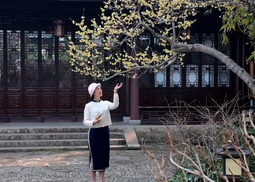 趁着天晴,游客刘冠军特地换上了旗袍,在梅花树前拍照打卡。“这里的梅花不只是美,还是古典园林独有的风情。看到满园的梅花,感觉心情很舒畅,有一种春的气息!”刘冠军说。